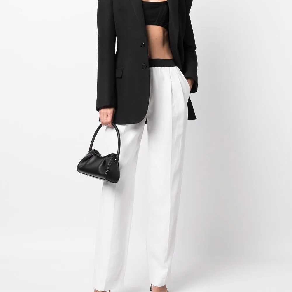 Юбка со встречной складкой, эластичный пояс и прямой крой. Цвет: белый.