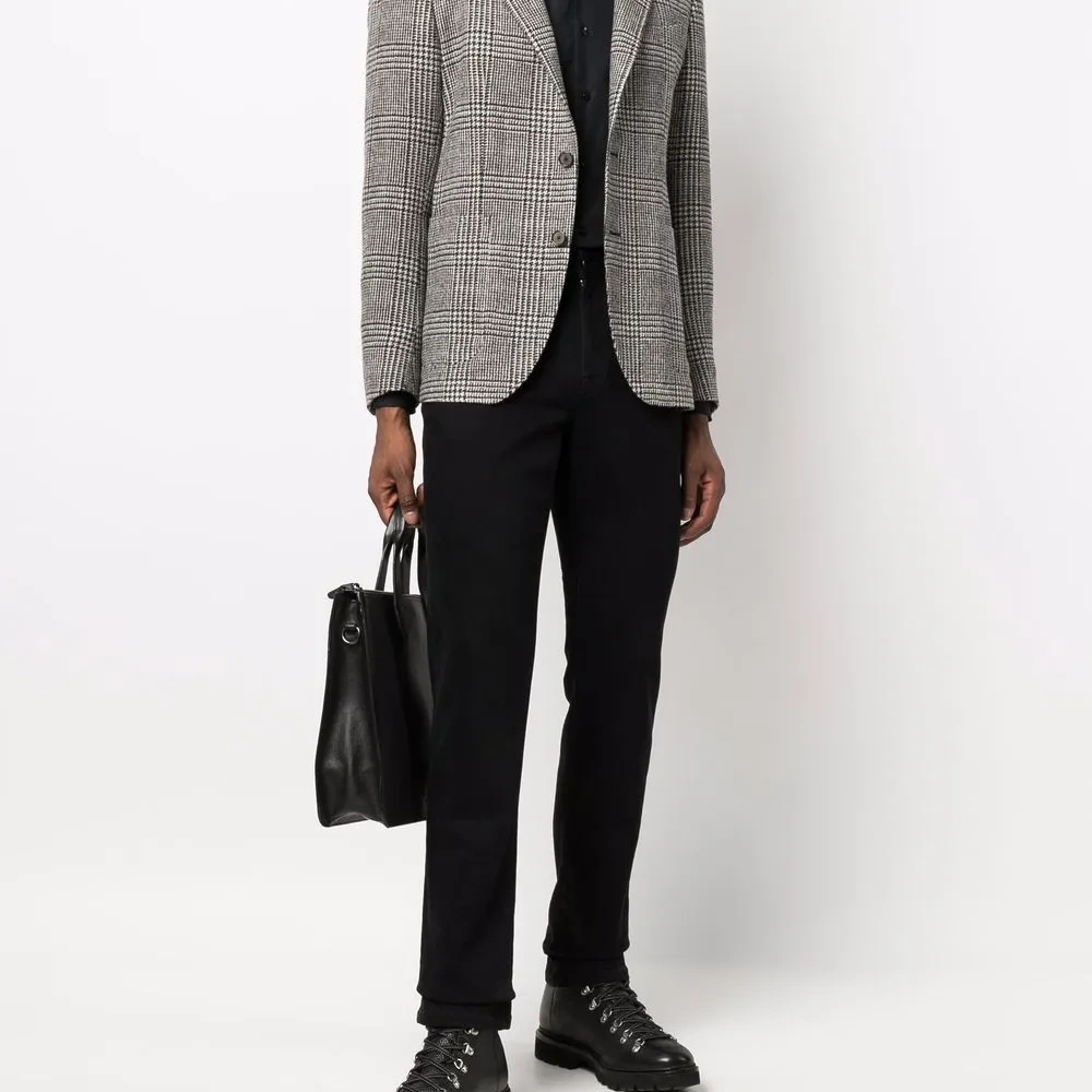 Легкий материал, косой воротник, застежка на пуговицах спереди, рукава с манжетами на пуговицах и прямой подол. Цвет: черный.