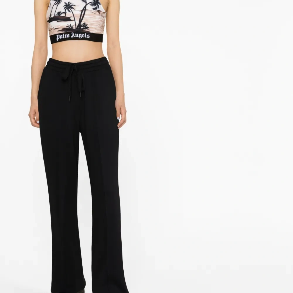 Расцветка Blush Pink, черный, принт с изображением пальм, эластичный материал, круглый вырез, без рукавов, логотип на подоле, вырез рейсер и укороченная длина.