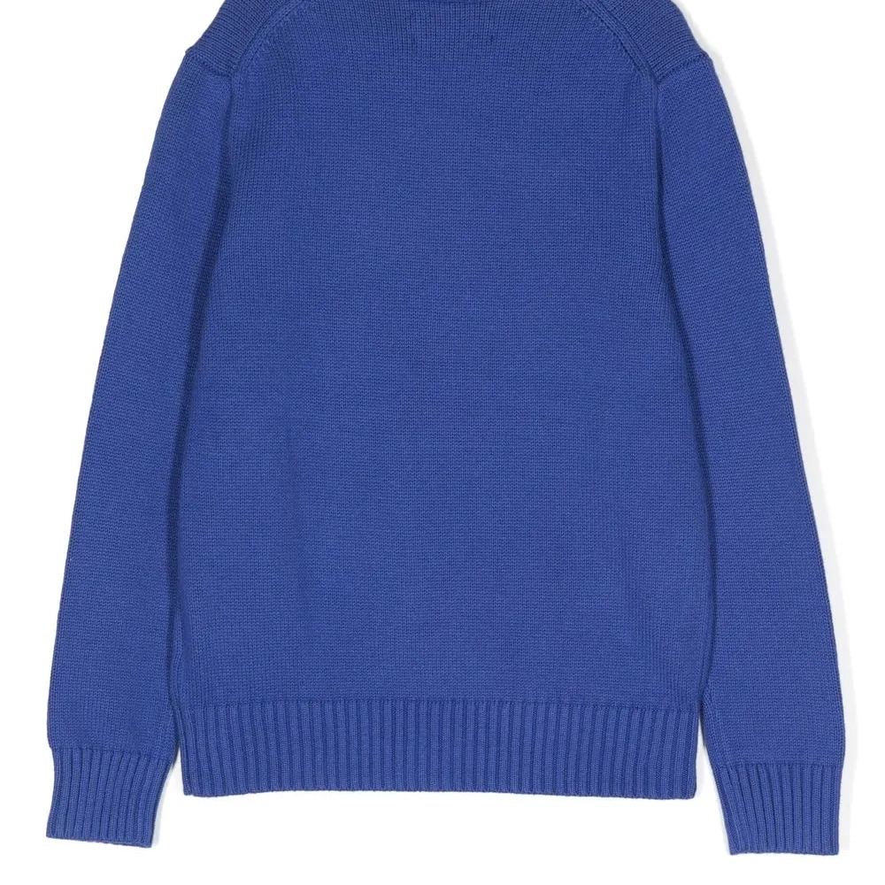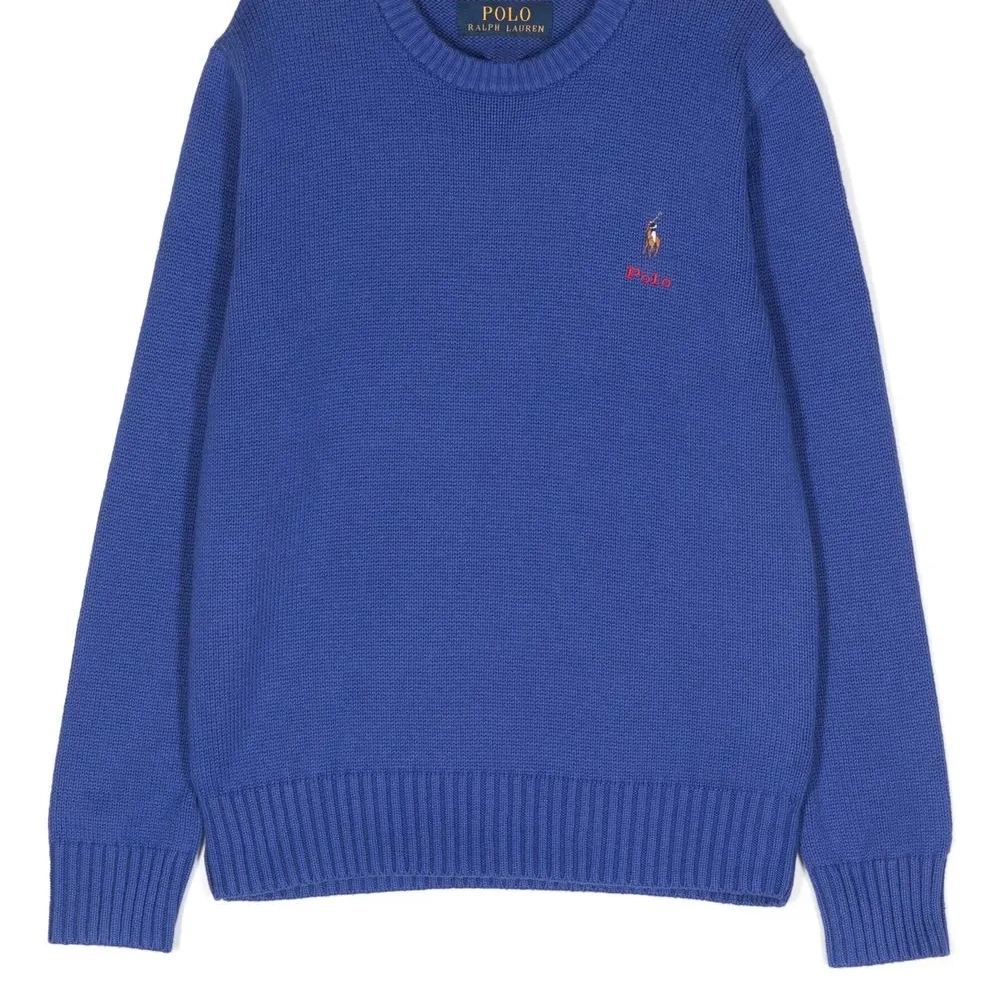 Синий, смесь хлопка и кашемира, трикотажный материал, вышитый логотип на груди, знаковый логотип Polo Pony, круглый вырез, длинные рукава, отделка в рубчик и прямой подол.