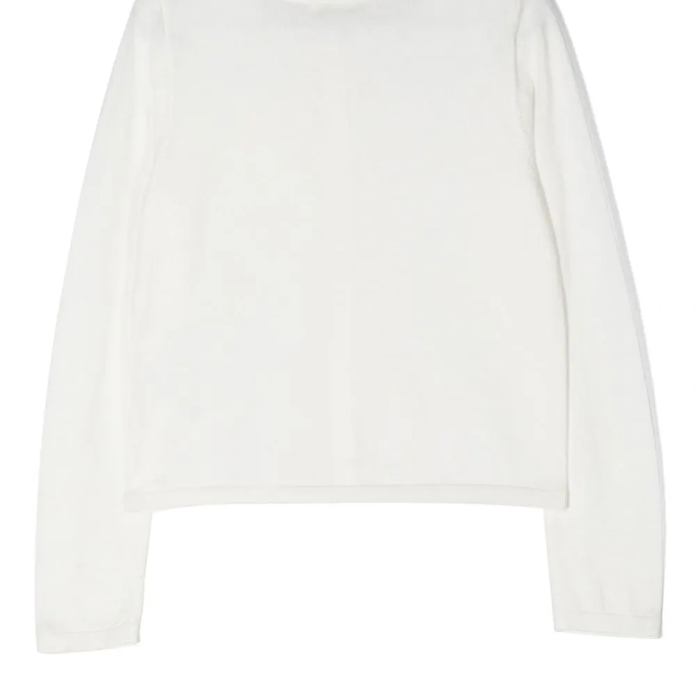 Белый, хлопок, круглый вырез, застежка на пуговицы и длинные рукава.