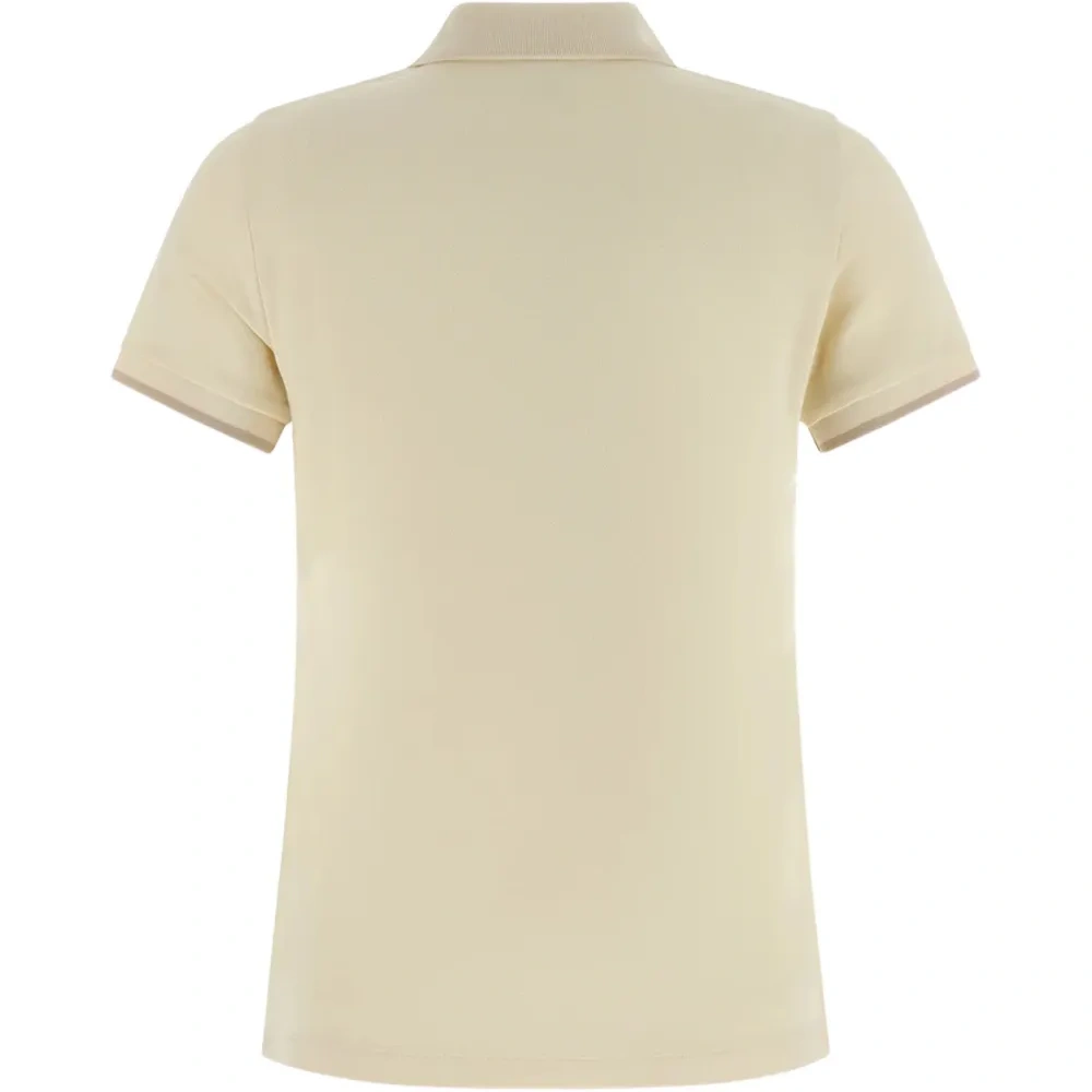 бежевый, нашивка с логотипом, полосатые манжеты, острый воротник, автоматическая застёжка на пуговицы, боковые разрезы