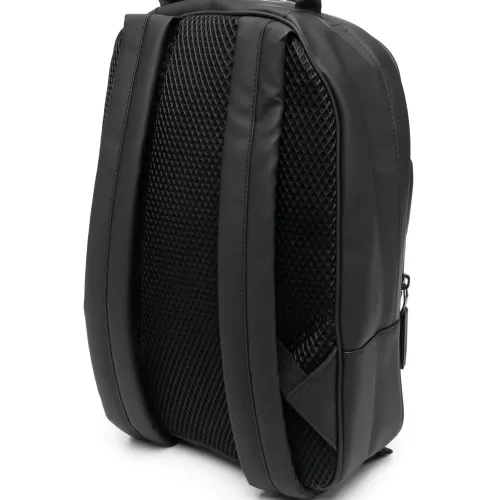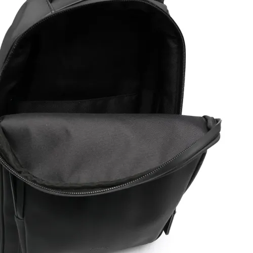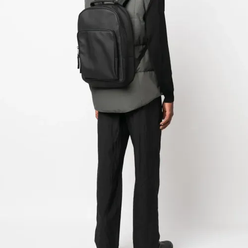 Черный, водонепроницаемый материал, тисненый логотип спереди, строчка в тон, круговая молния, верхняя ручка, два регулируемых ремня на плечо, карман на молнии спереди, внутреннее отделение для ноутбука и основное отделение. Узнать больше о том, какие товары получают отметку «Ответственный выбор», можно из материала «Как мы оцениваем экологичность и этичность».