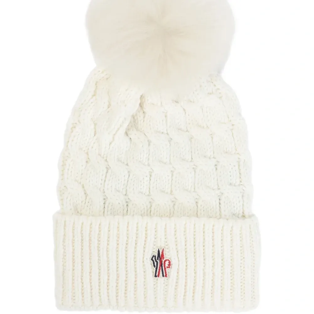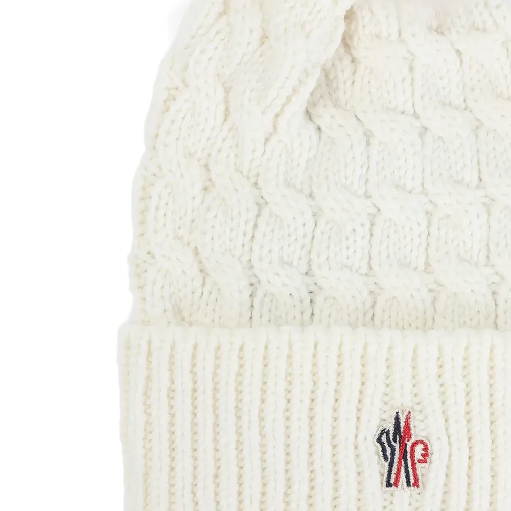 шерстяная шапка Off-White с кабельной вязкой, помпоном, ребристым краем и вышитым логотипом