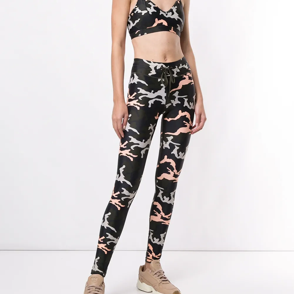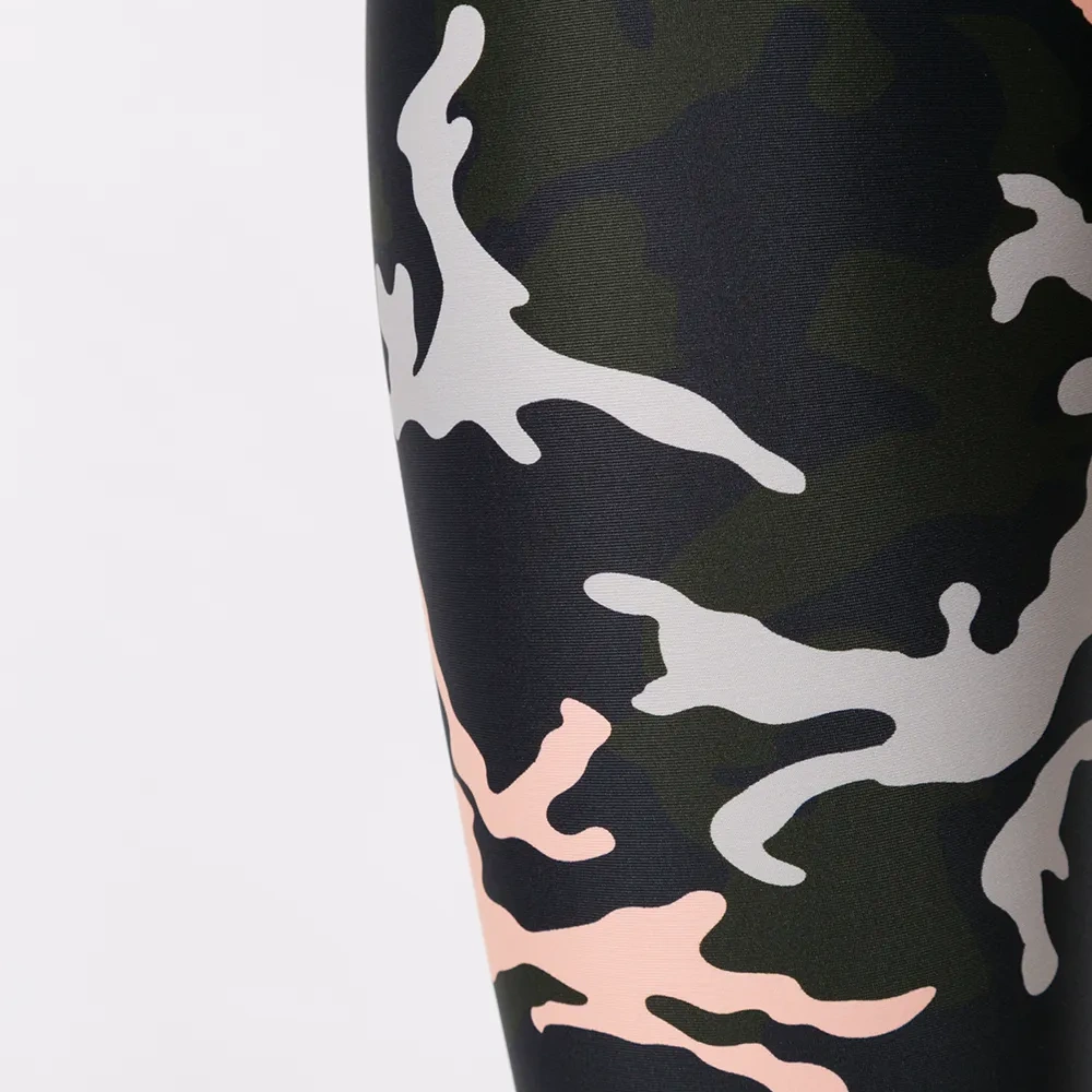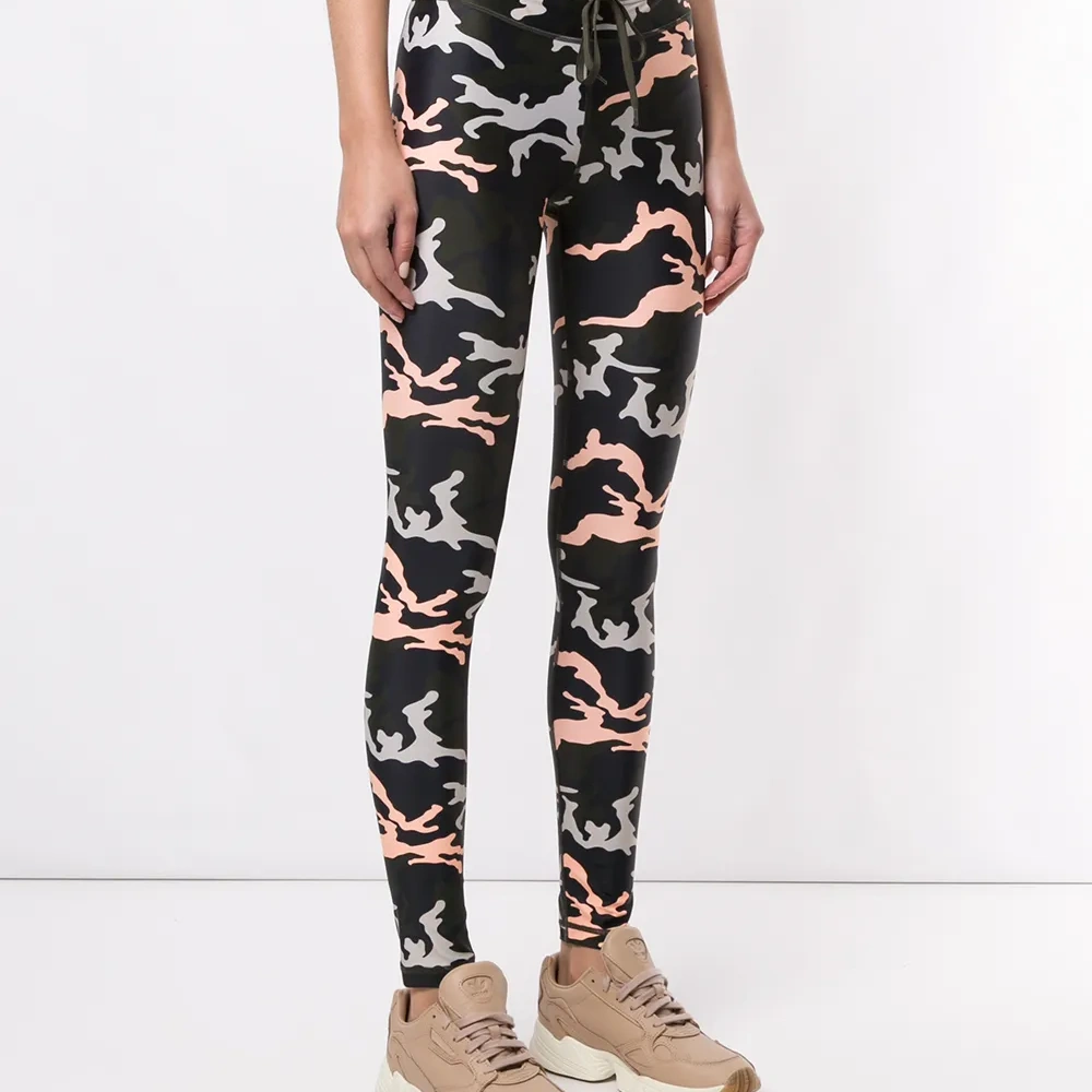 Брюки для йоги Camo 54 от The Upside. Завышенная посадка, эластичная модель, камуфляжный узор и принт с логотипом сзади.