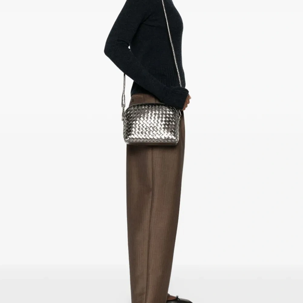 серый плетёный дизайн, застежка-молния, верхняя ручка, внутренний накладной карман