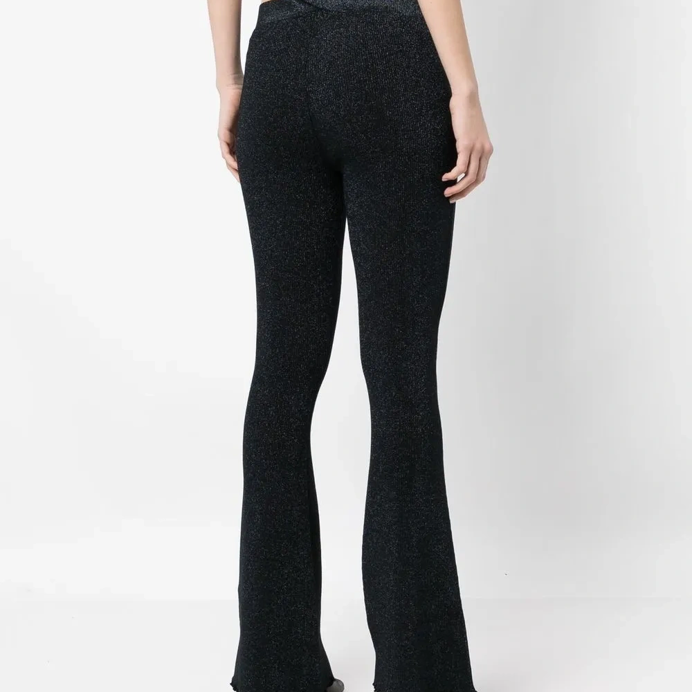 Эффект металлик, вырезные детали, завышенная талия и расклешенные манжеты.