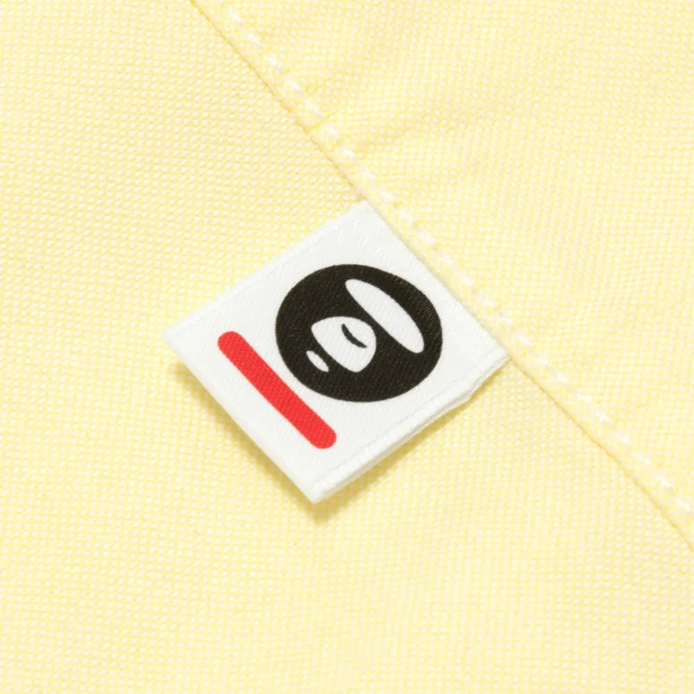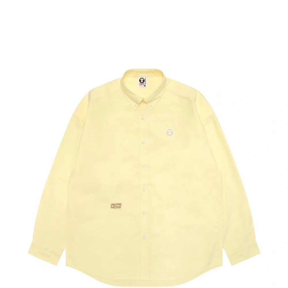 жёлтая рубашка с вышивкой, застёжкой на пуговицы, длинными рукавами, манжетами на пуговицах и нашивкой