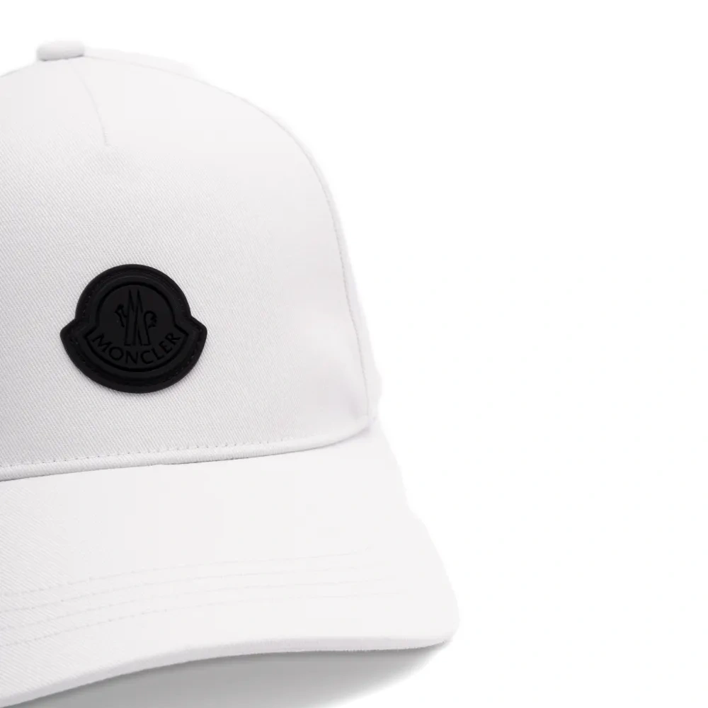 белая хлопковая кепка с нашивкой-логотипом, регулируемым ремешком, изогнутым козырьком и верхней кнопкой