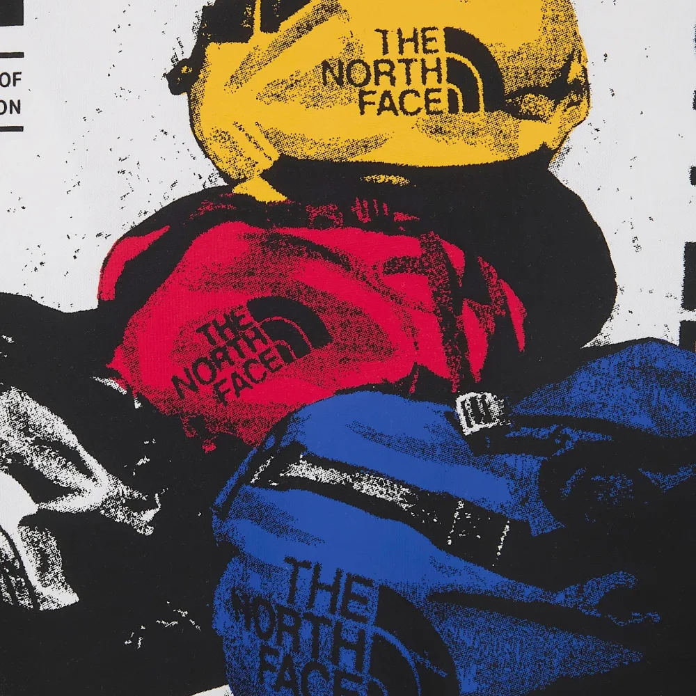 белая футболка с круглым вырезом, короткими рукавами и графическим принтом