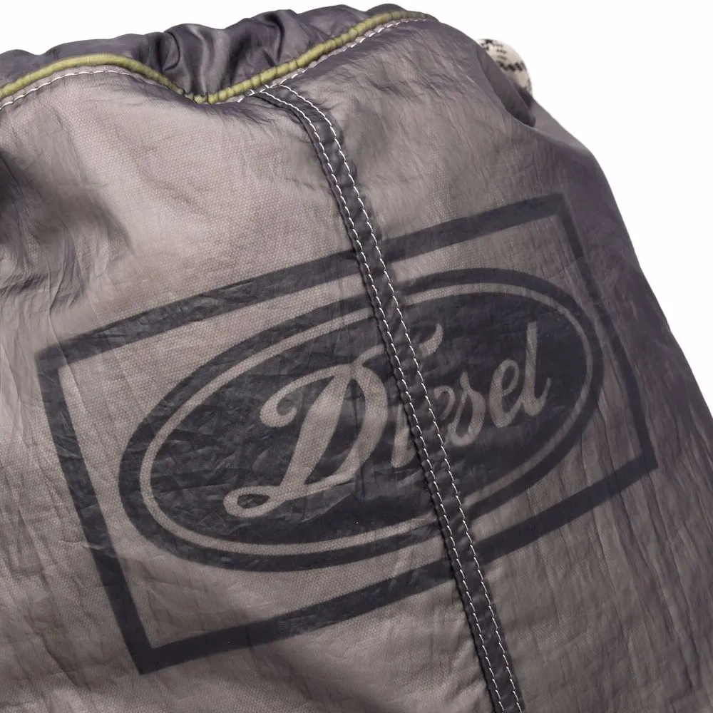 Логотип спереди, швы, застежка на шнурке, основное отделение и внутренний карман на молнии.