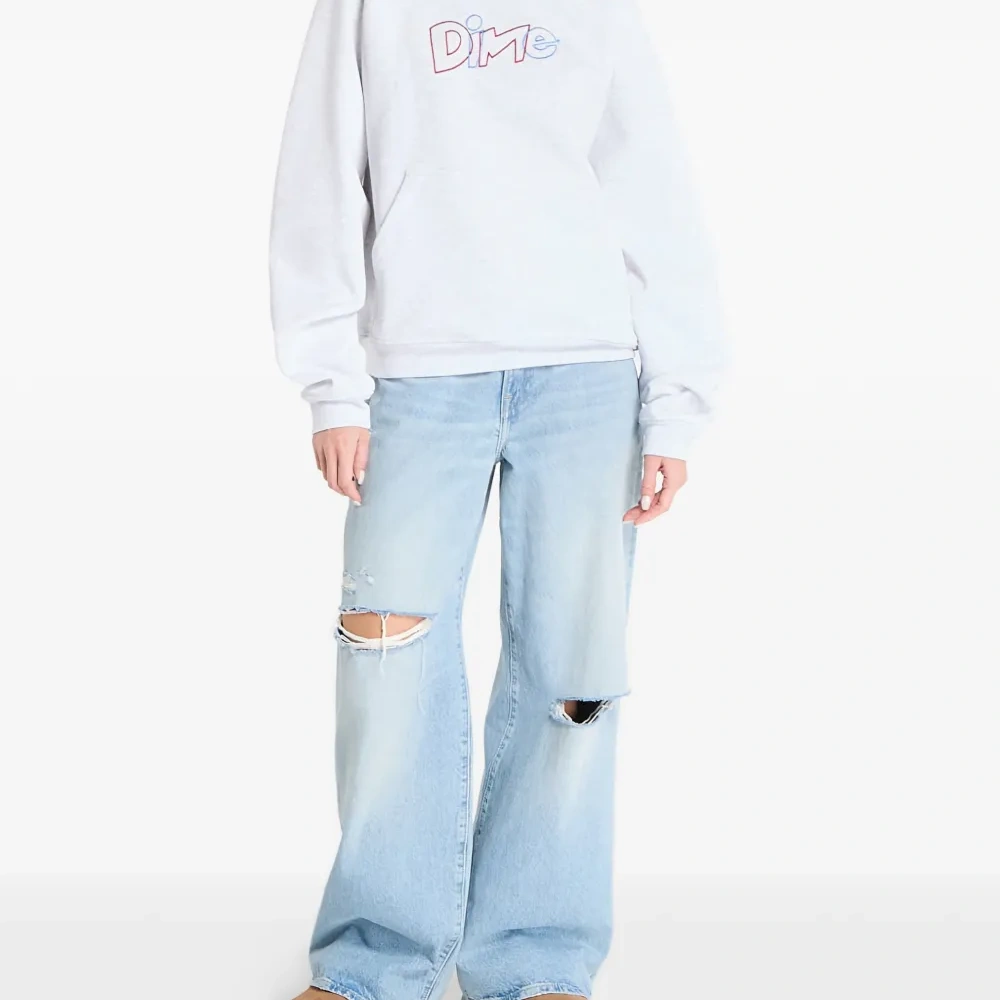 Серый худи с вышитым логотипом, передним карманом-кенгуру, длинными рукавами и ребристым подолом