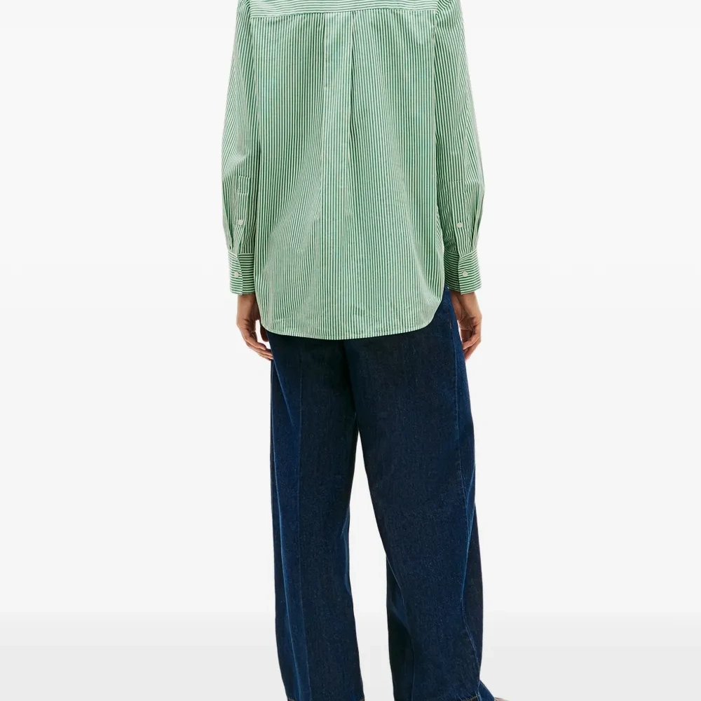 зелёная/белая в полоску, вышитый декор, застёжка на пуговицы, длинные рукава, манжеты на пуговицах