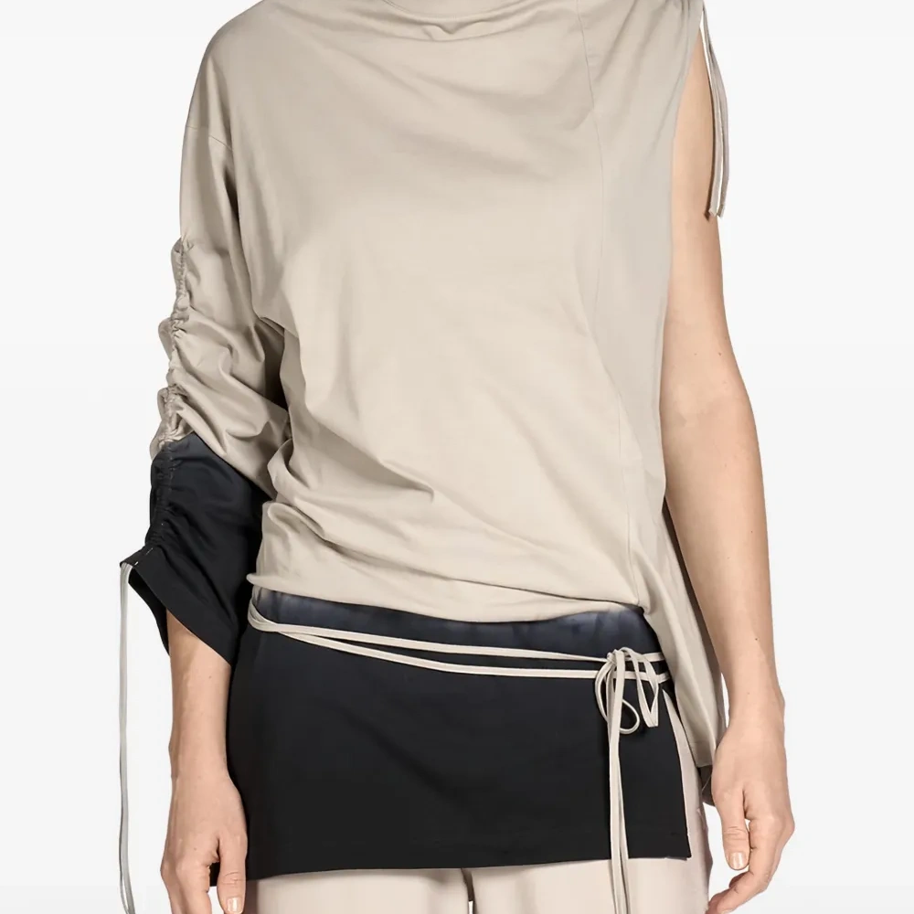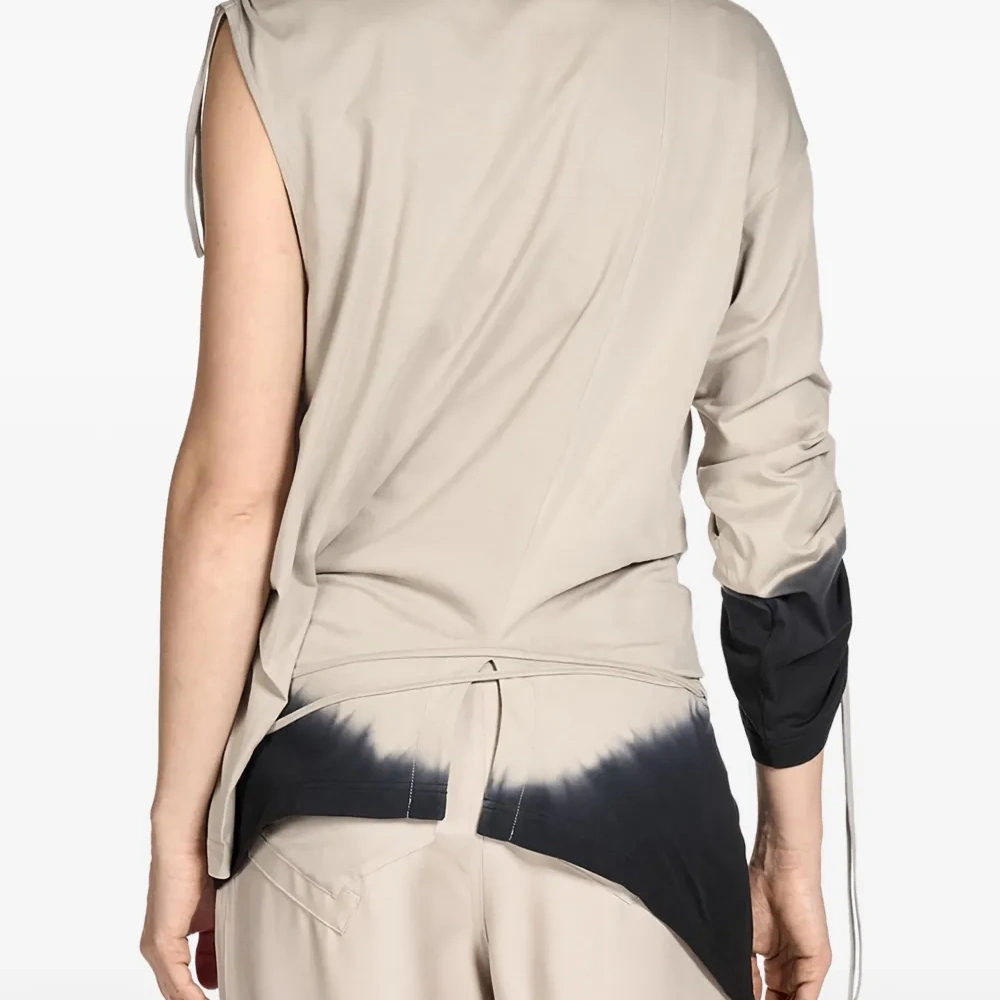 бежевый с эффектом дип-дай, асимметричный дизайн, детали со шнурком, круглый вырез
