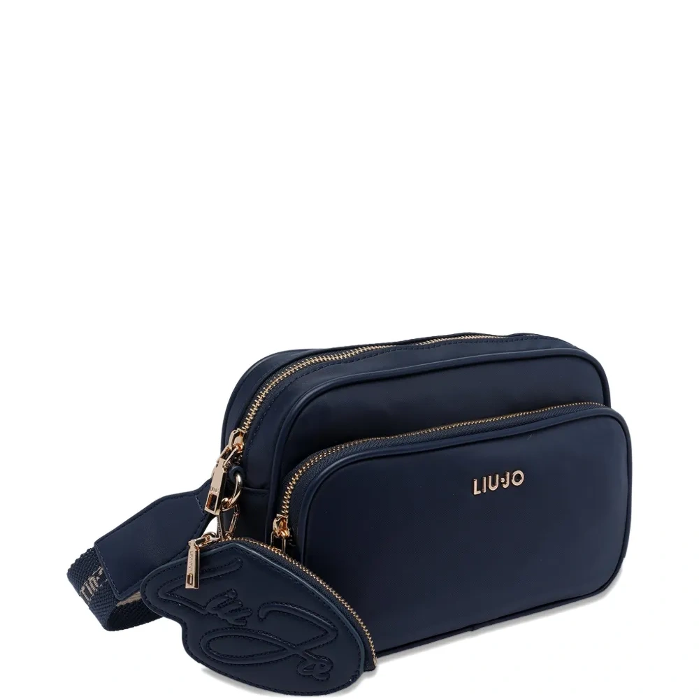синий брелок с логотипом, регулируемый ремешок, застежка-молния спереди с логотипом, внешний карман на молнии