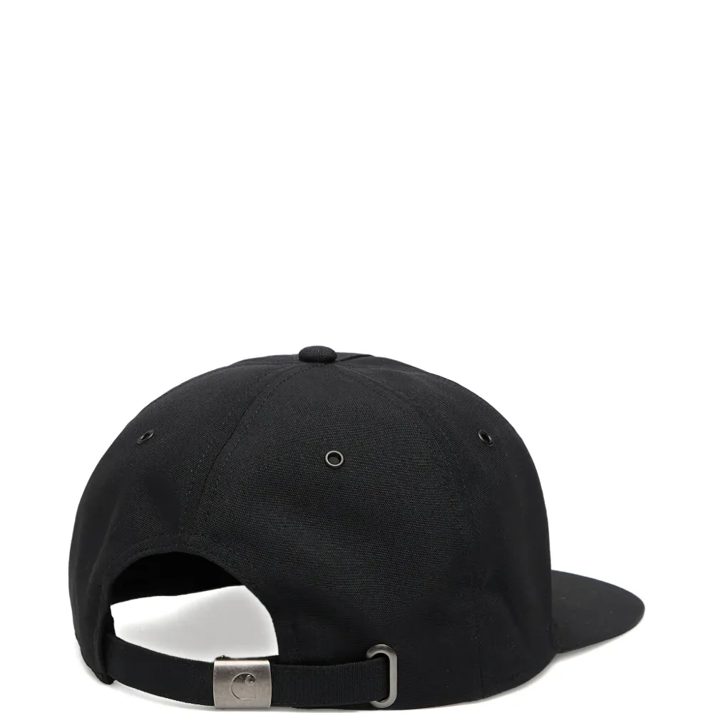 чёрная нашивка с логотипом, однотонная строчка, задний ремешок, металлическая фурнитура