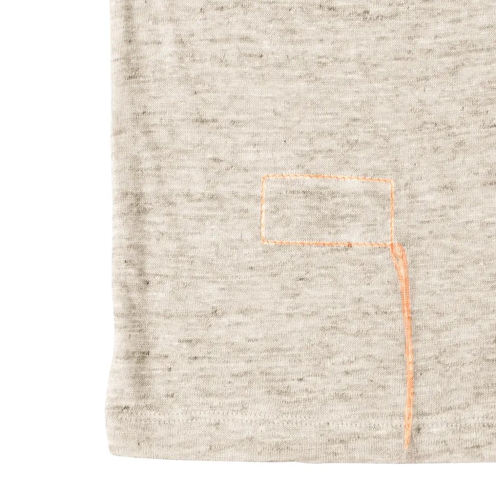 серая льняная рубашка с длинными рукавами и V-образным вырезом