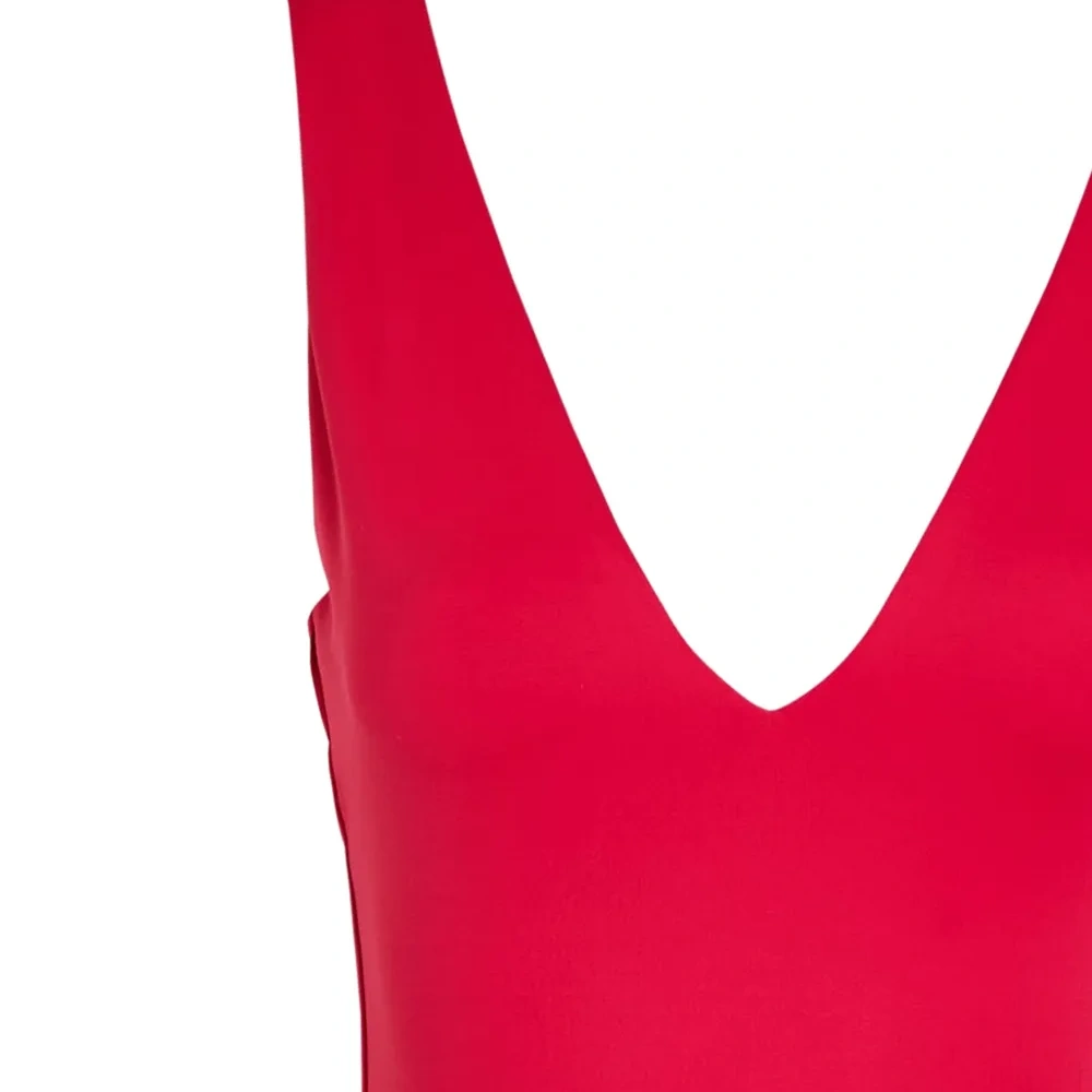 рубинового цвета топ без рукавов с V-образным вырезом. Пожалуйста, обратите внимание, что эту вещь необходимо примерять поверх собственной одежды.