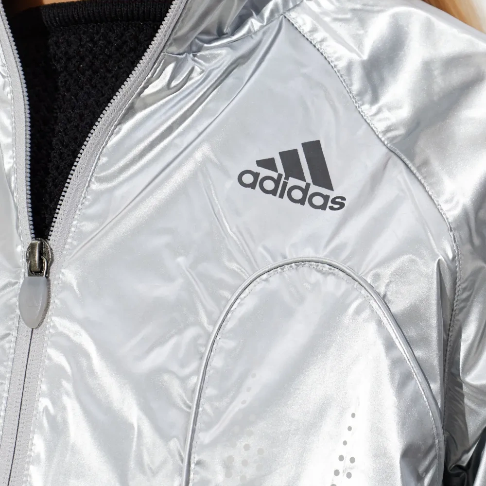 серебристый оттенок, застежка-молния, деталь с логотипом, эластичный нижний край, боковые карманы
