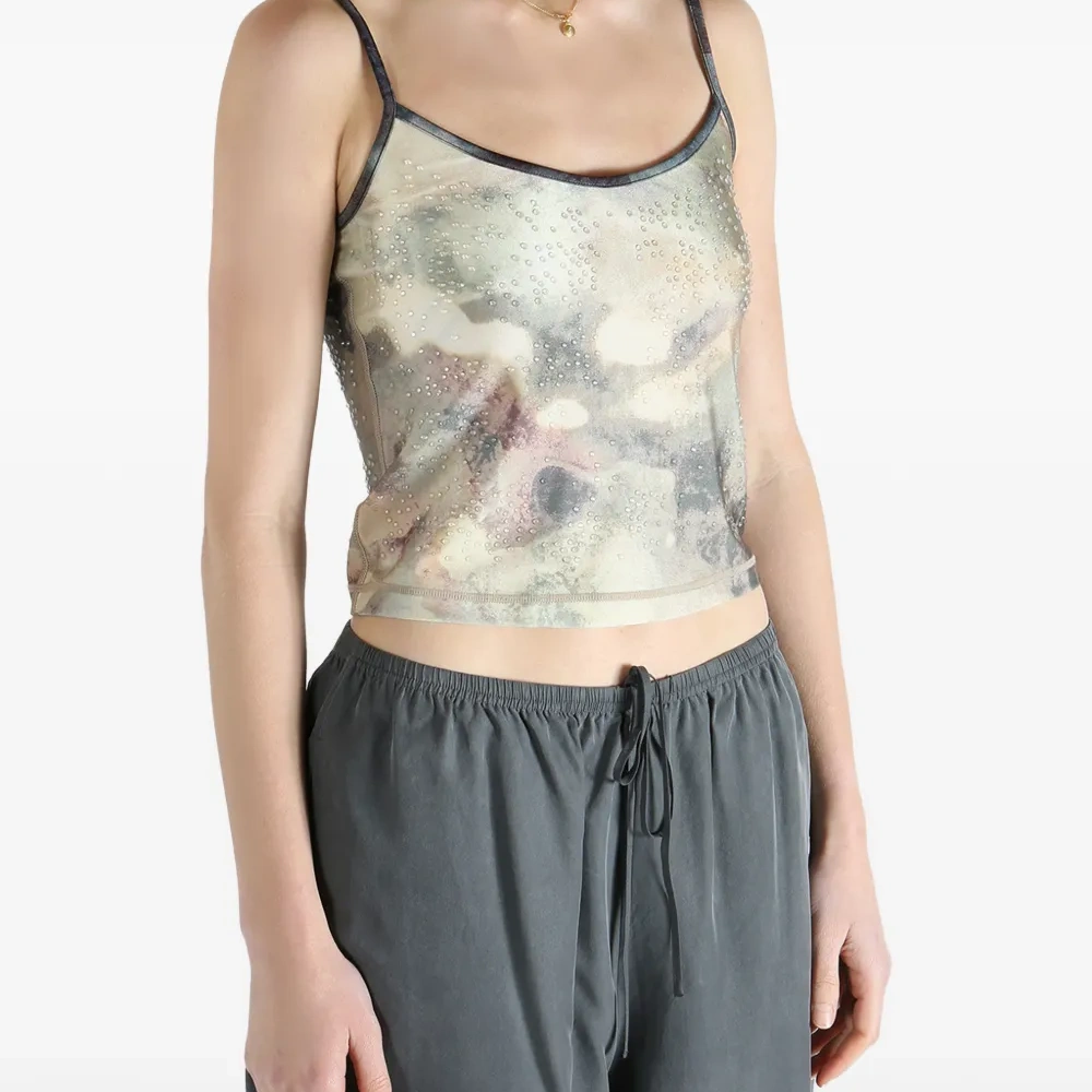 бежевый/многоцветный принт по всей поверхности, украшения, тонкие бретели