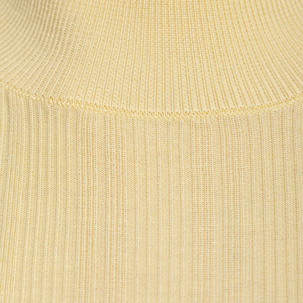 ванильно-жёлтый в рубчик трикотаж с короткими рукавами и воротником-стойкой
