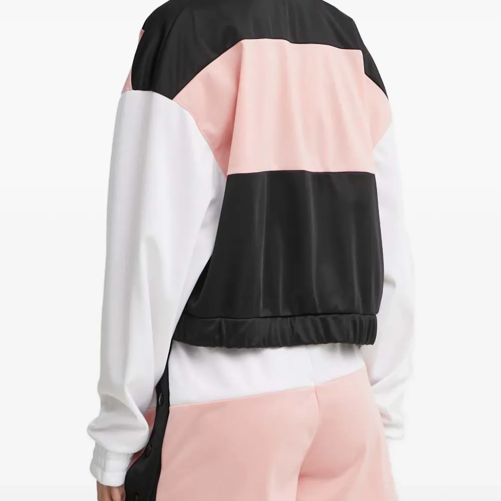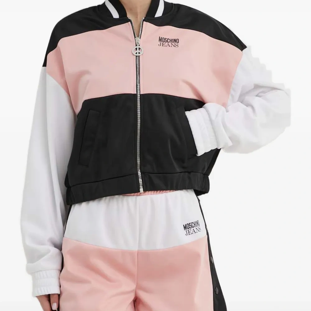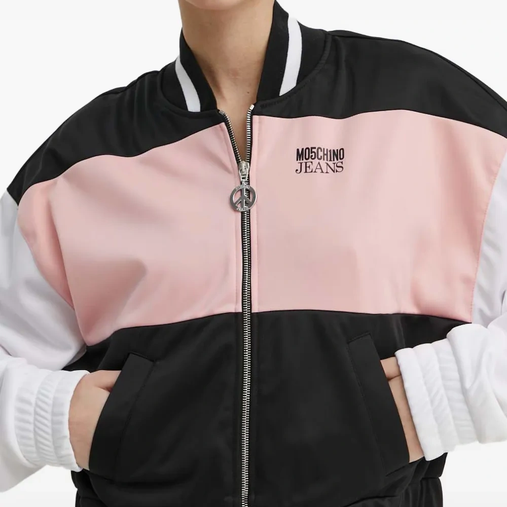 пудрово-розовый цвет, дизайн в стиле колор-блок, круглый вырез, застежка-молния, длинные рукава, эластичный нижний край
