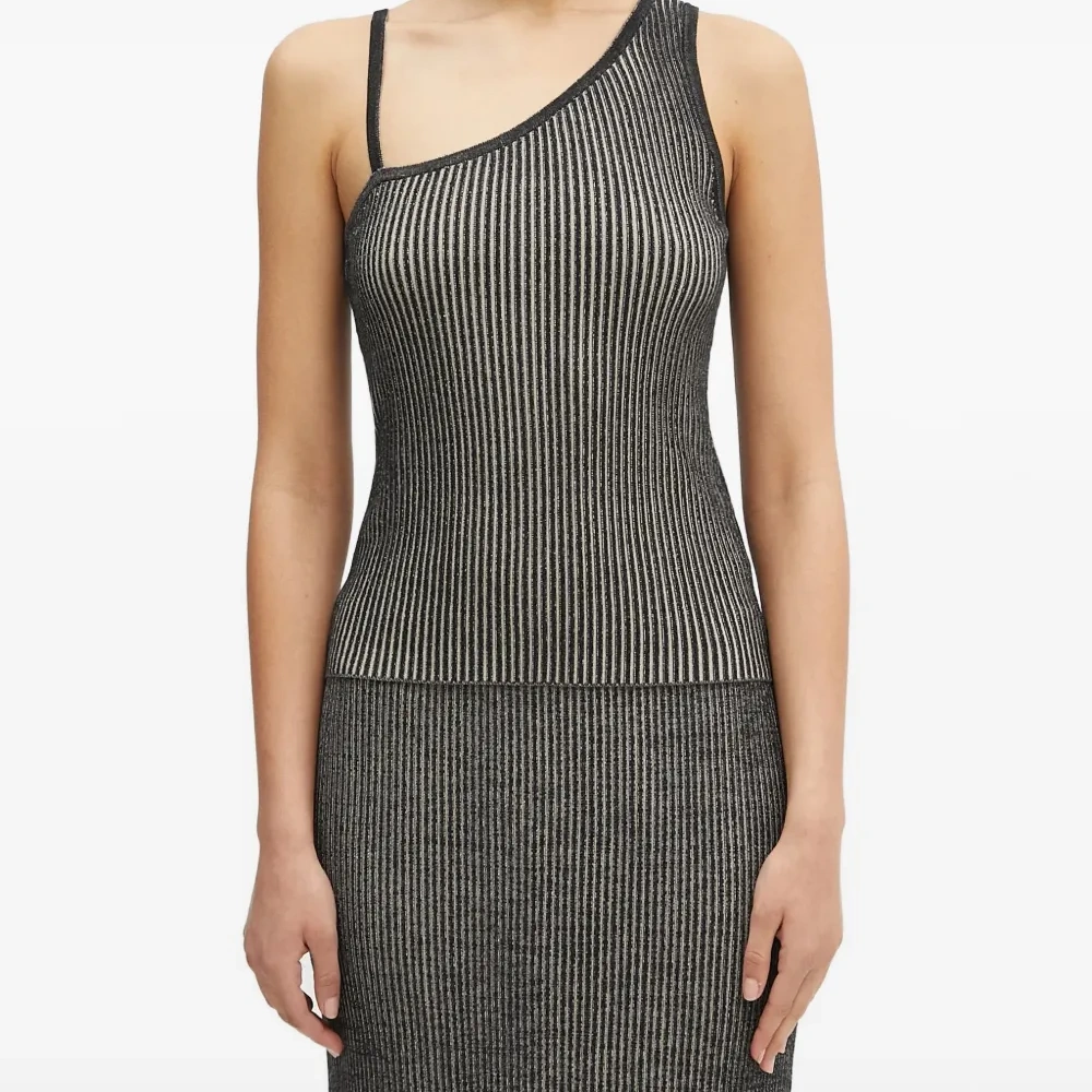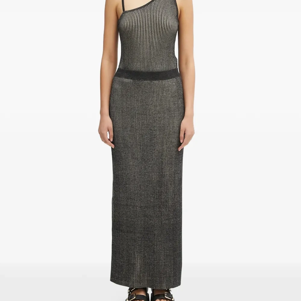темно-серая полосатая модель на одно плечо с деталями-ремешками