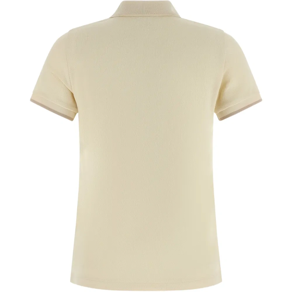 белый пике, трикотаж, планка на кнопках, нашивка с логотипом, контрастная отделка, боковые разрезы