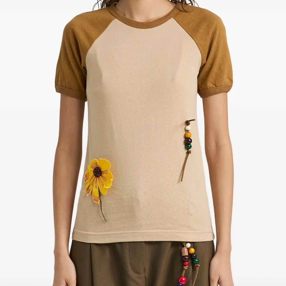Футболка с аппликацией в виде цветов