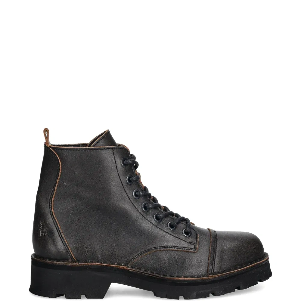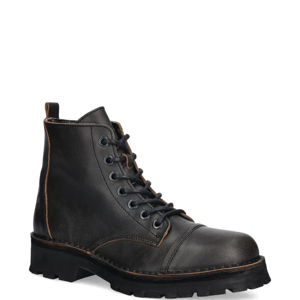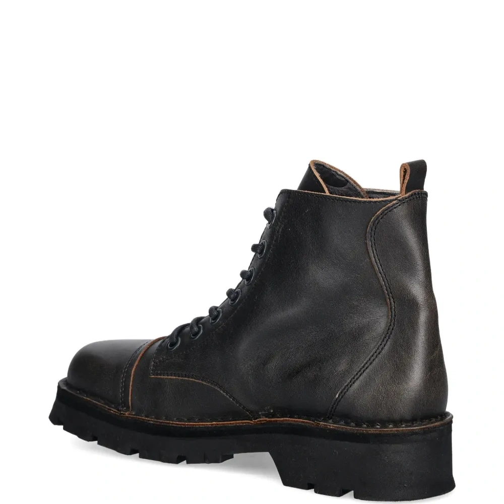 чёрные ботинки на шнуровке с массивной подошвой и задней петлей