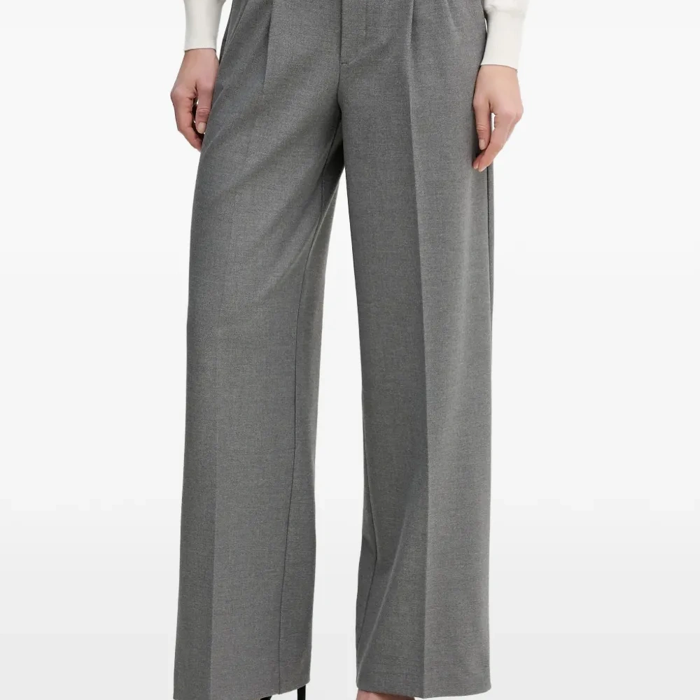 серые, шлевки для ремня, складки, задний карман, широкие брючины, потайная застежка