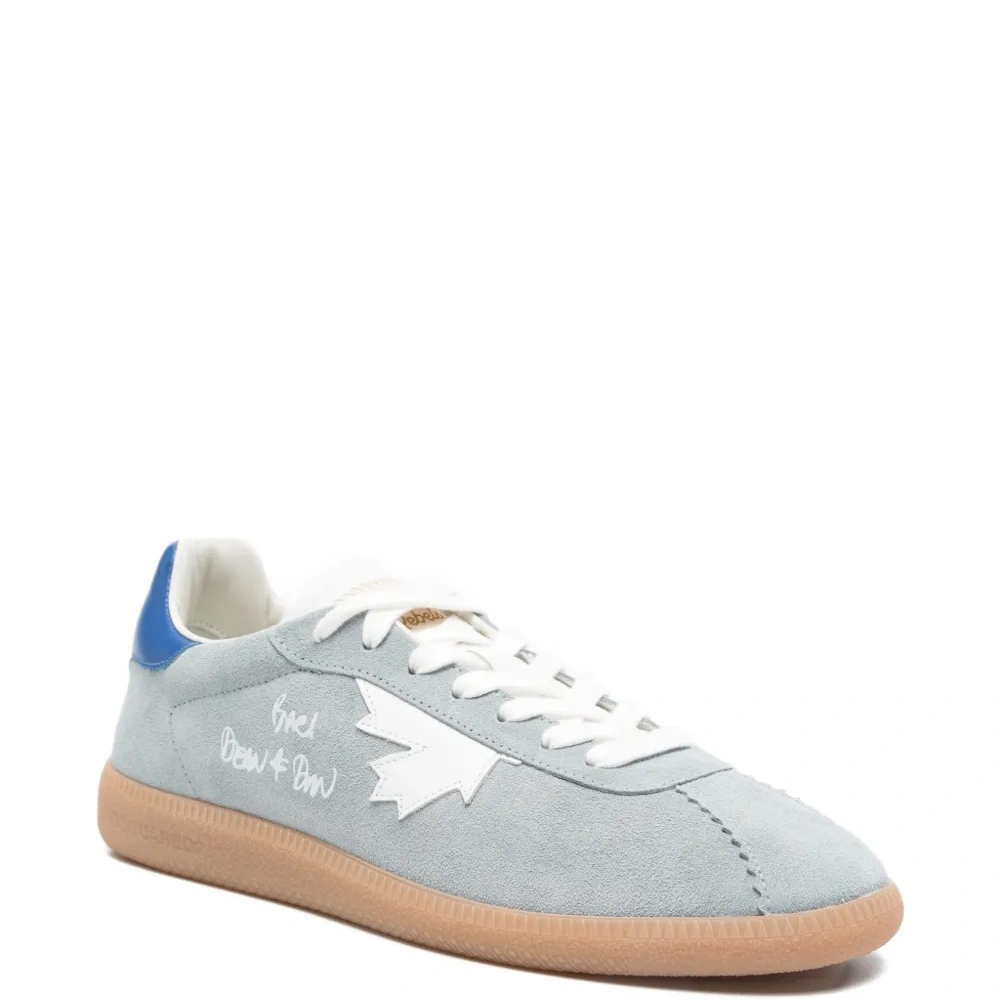 светло-голубые, белые шнурки, фирменная деталь, синий задник, однотонная прострочка, плоская подошва