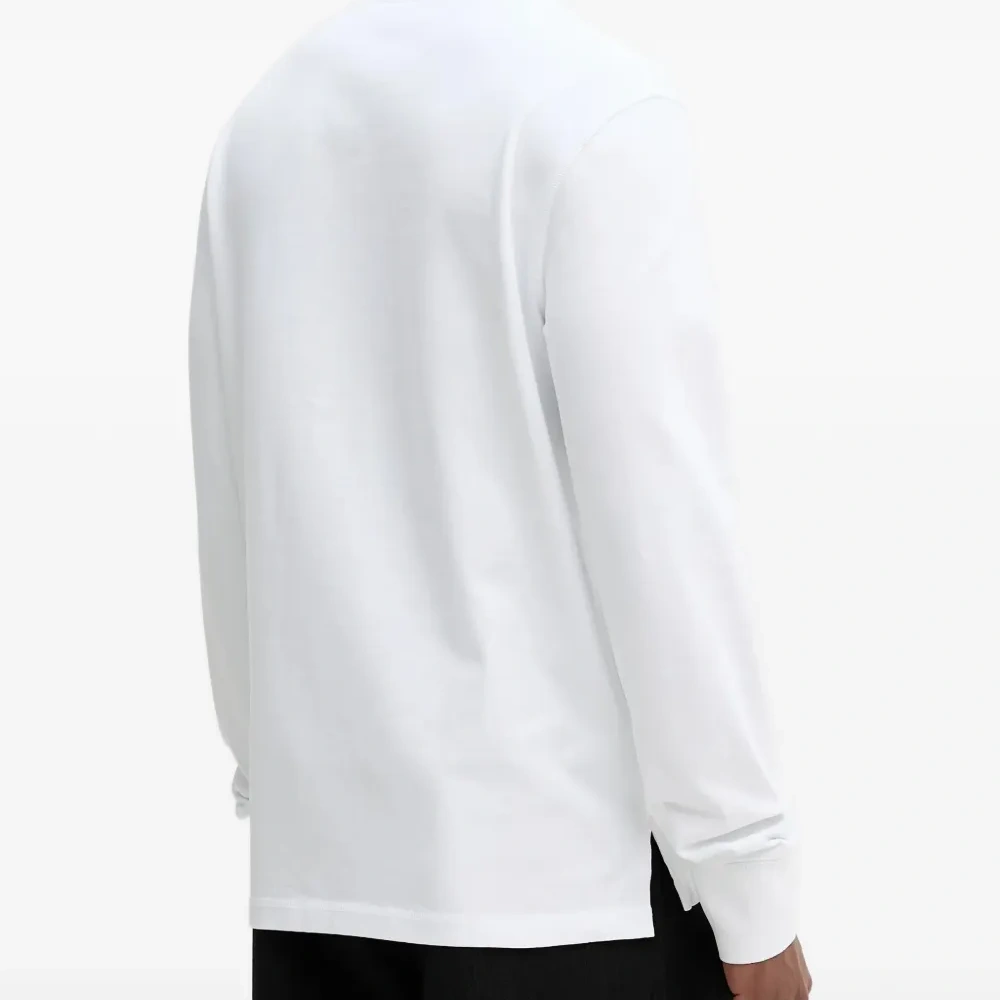 белый цвет, круглый вырез, планка с пуговицами, длинные рукава, прямой низ