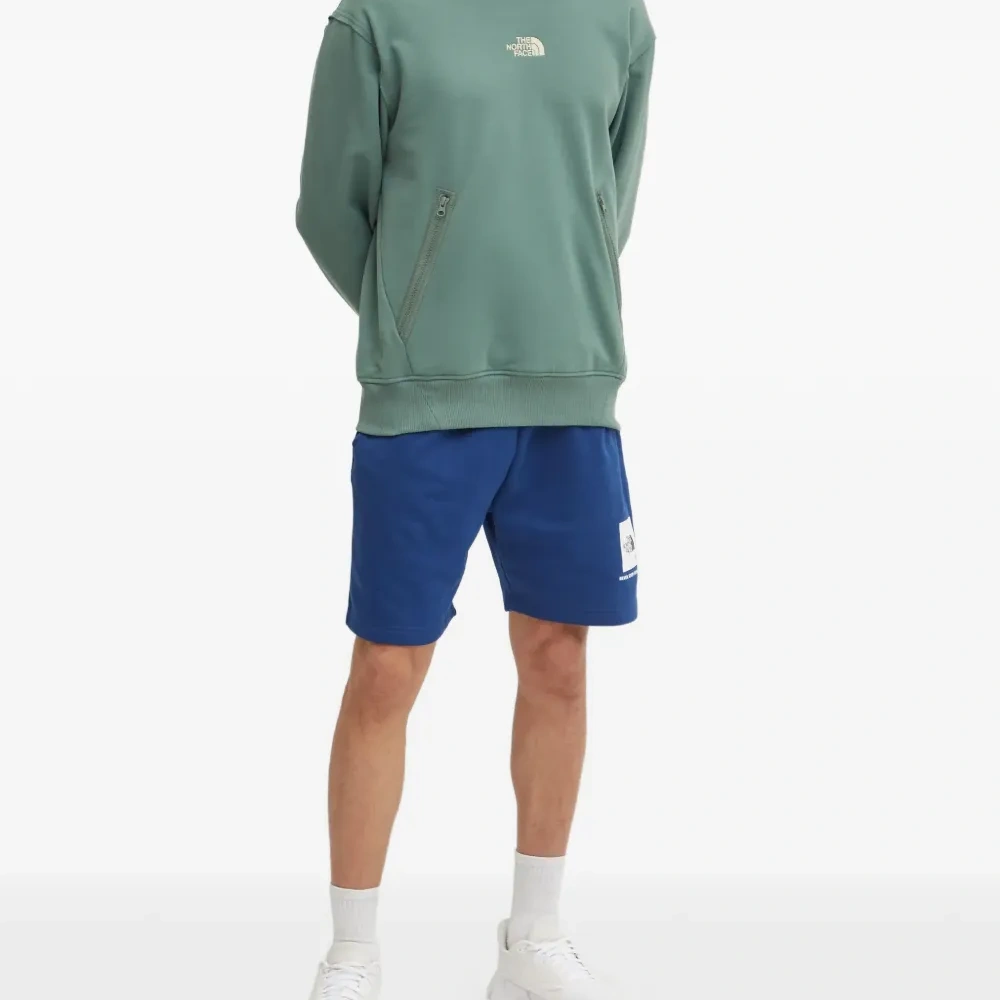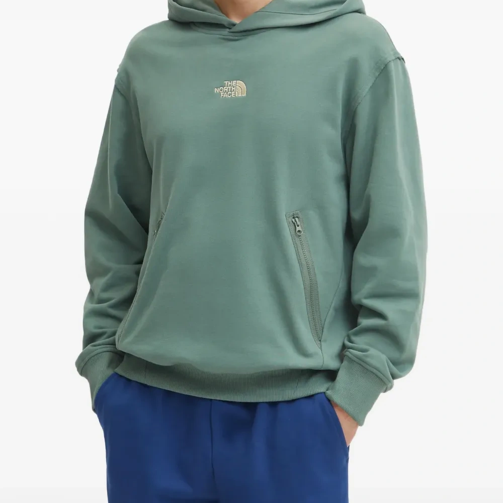 серо-зеленый худи с вышитым логотипом, карманом на молнии, принтом на спине и длинными рукавами