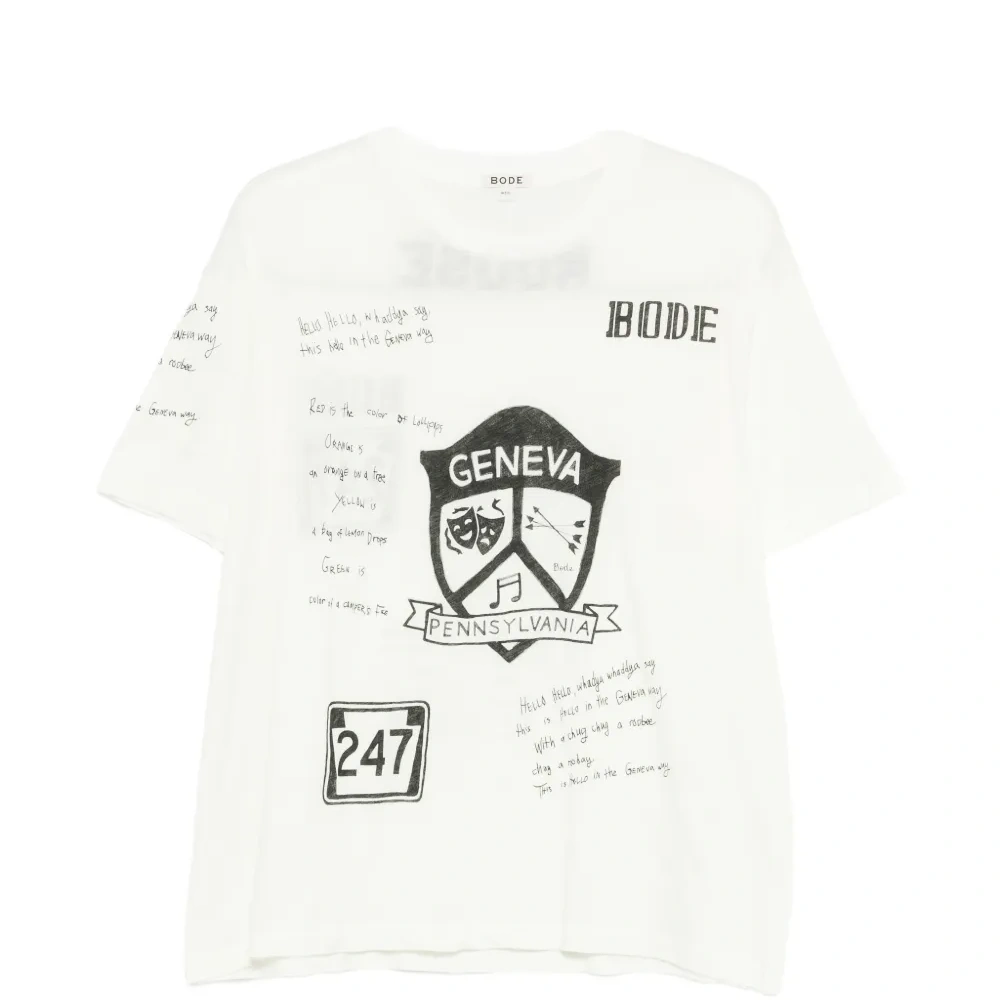 кремовая футболка с графическим принтом, круглым вырезом и короткими рукавами