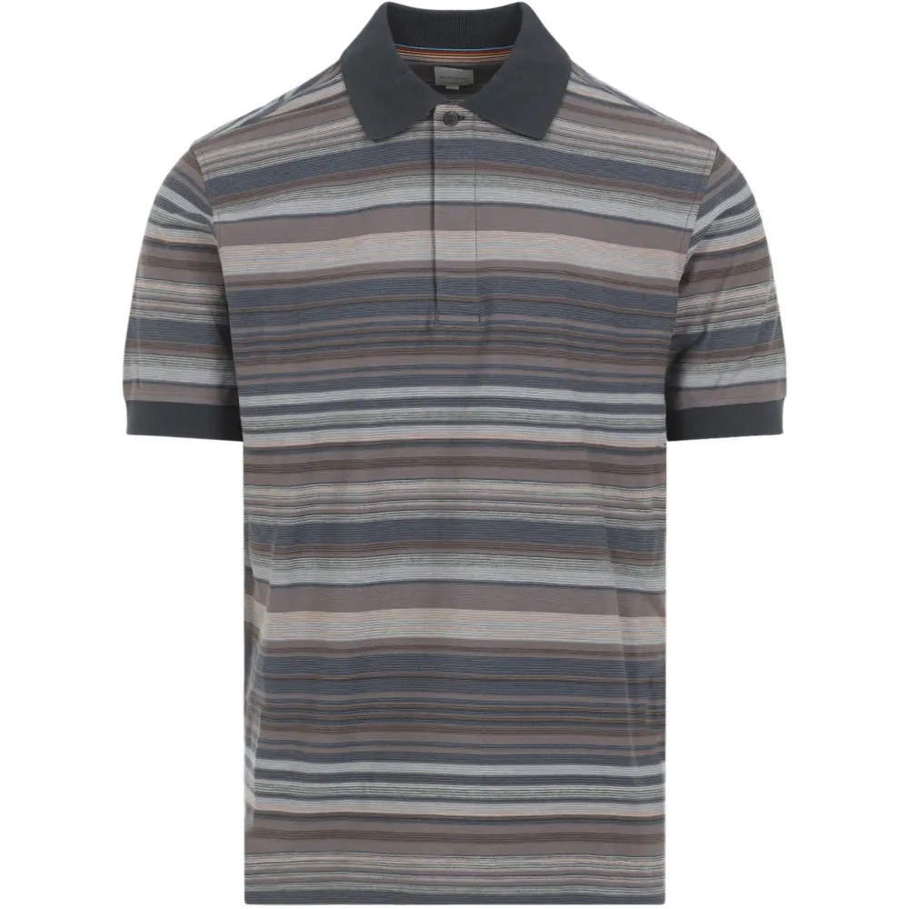 серый рубашка в полоску с отложным воротником, короткими рукавами и застежкой на пуговицы спереди