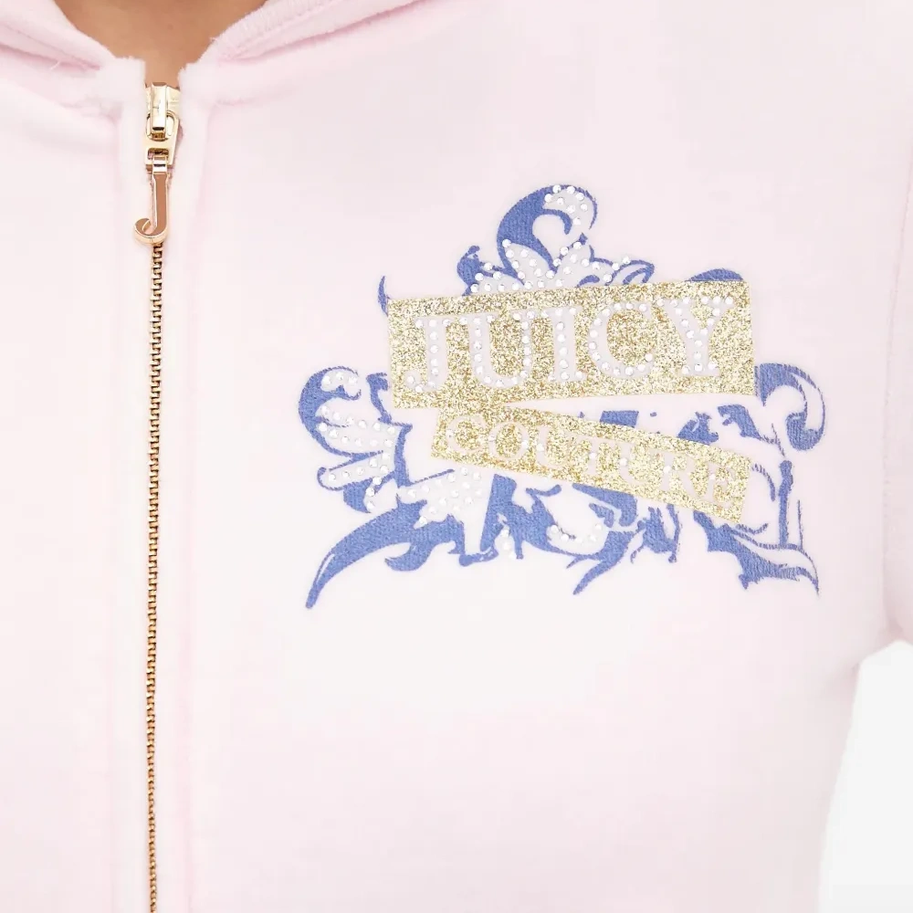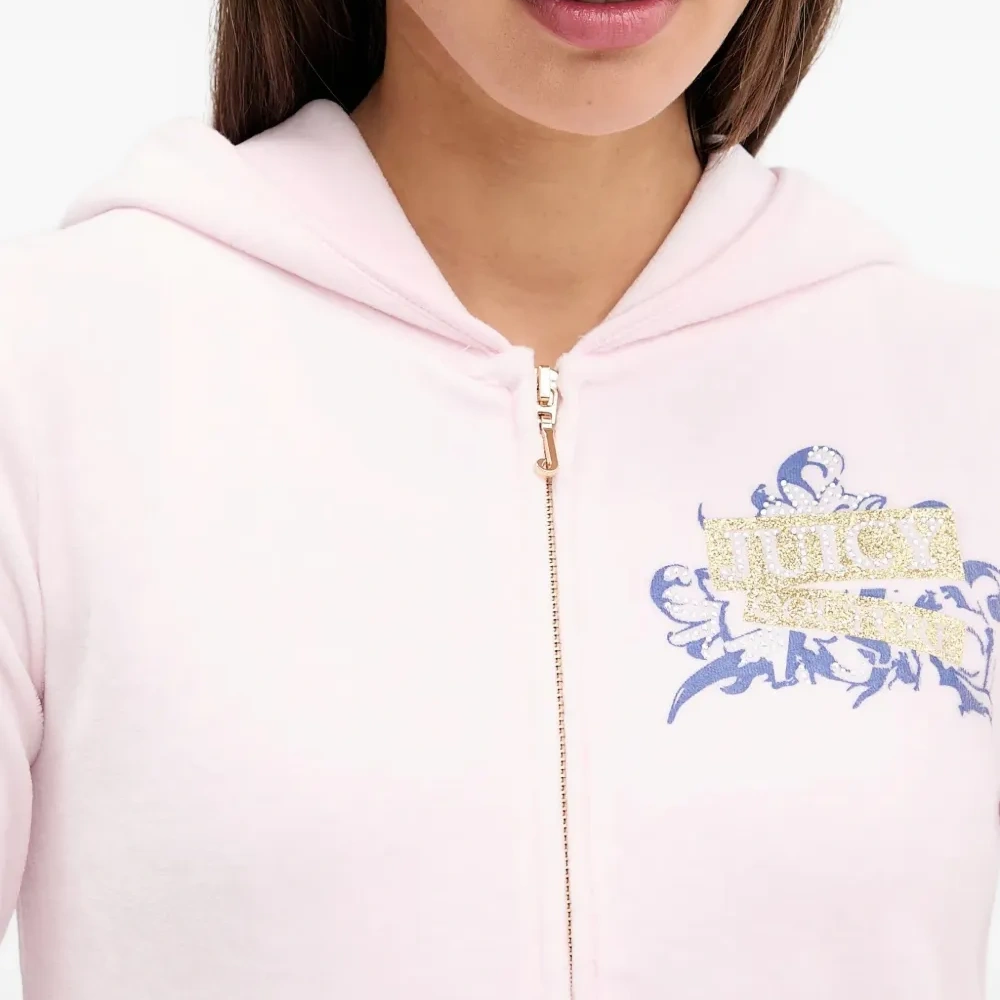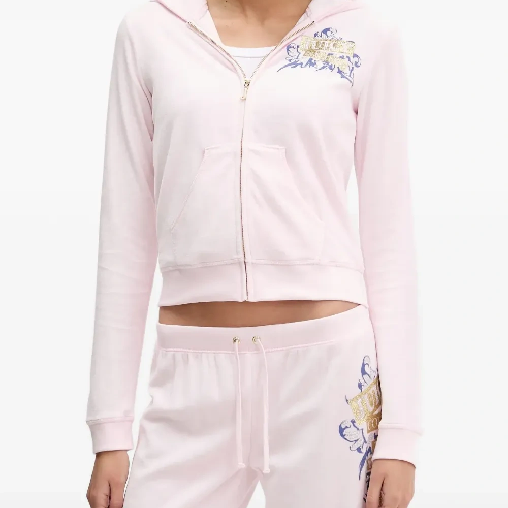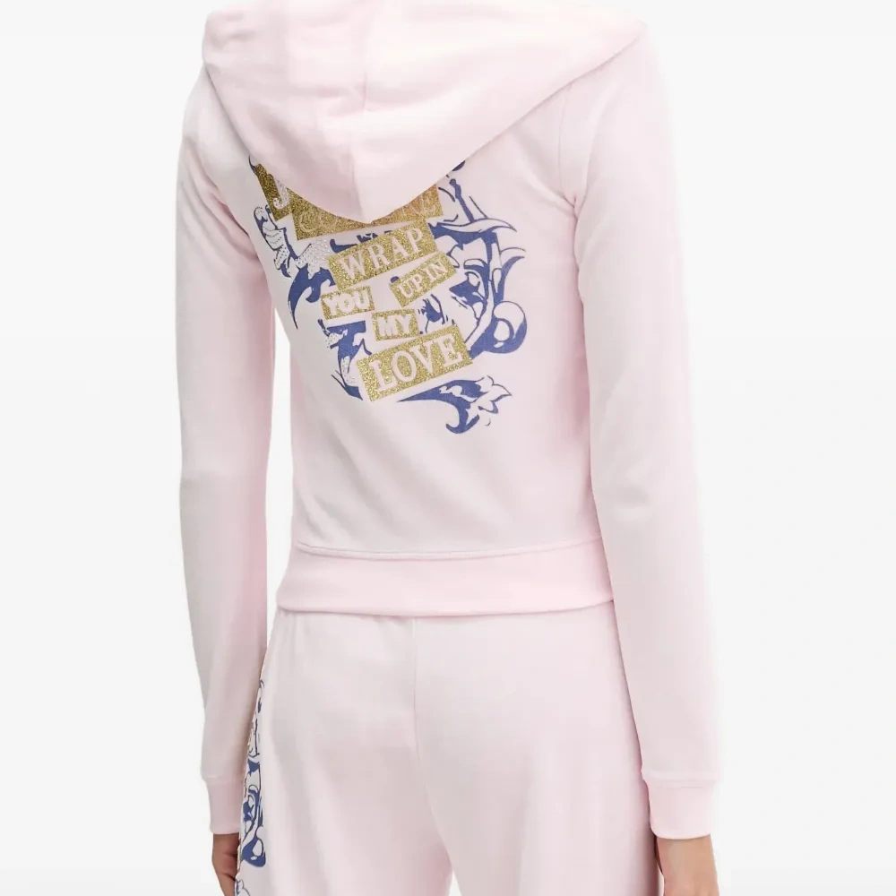 розовая толстовка с капюшоном, графическим принтом, застежкой-молнией и длинными рукавами