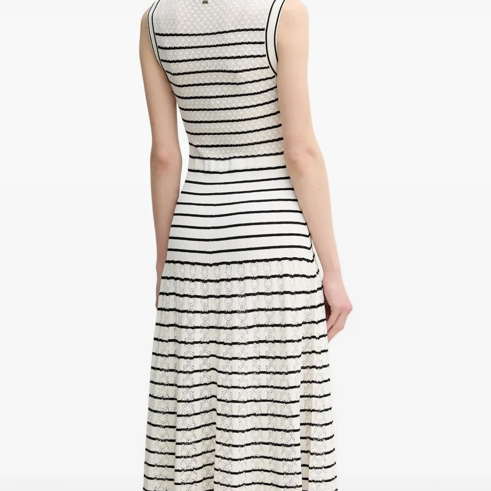 Полосатое миди-платье с пуговицами и карманами