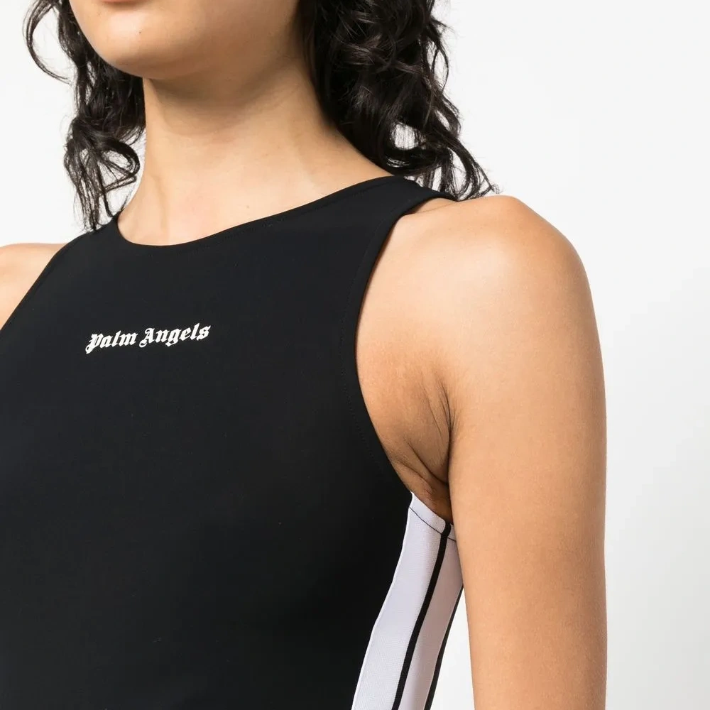 Черный/белый, логотип спереди, полоска сбоку, круглый вырез и без рукавов.