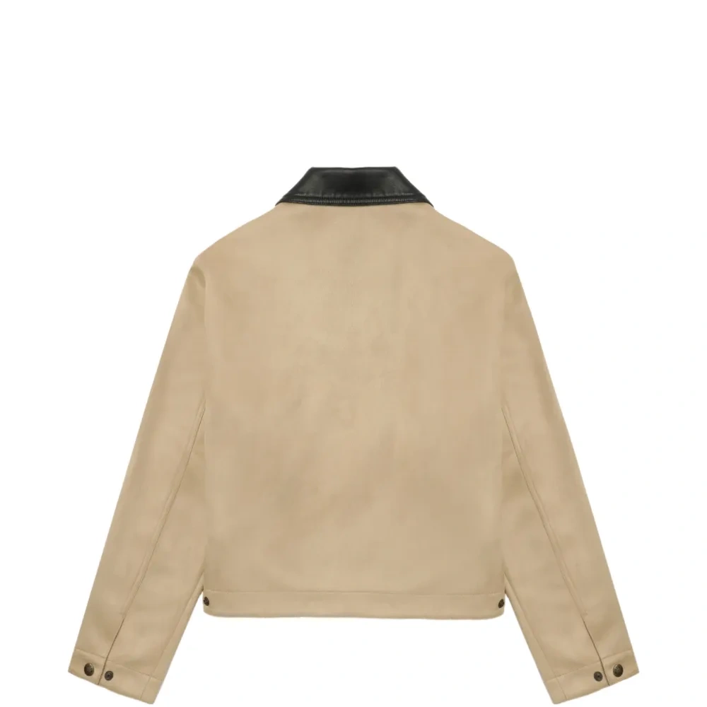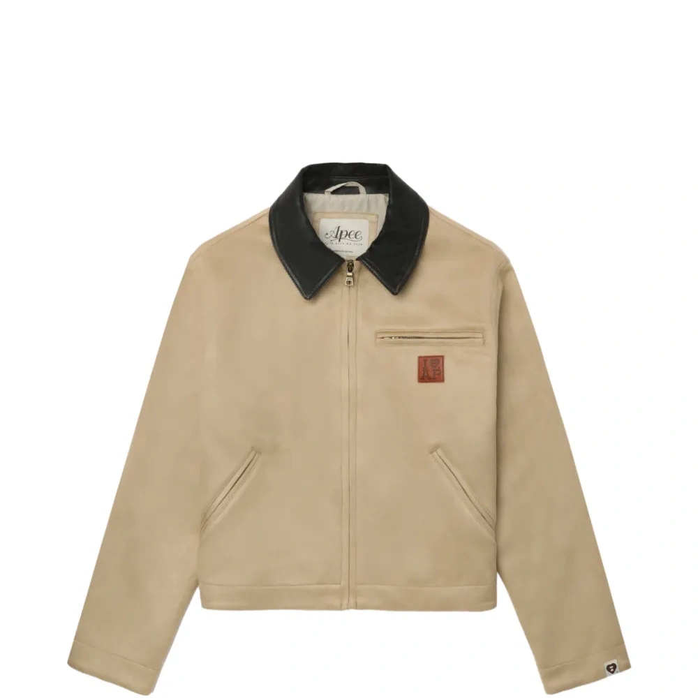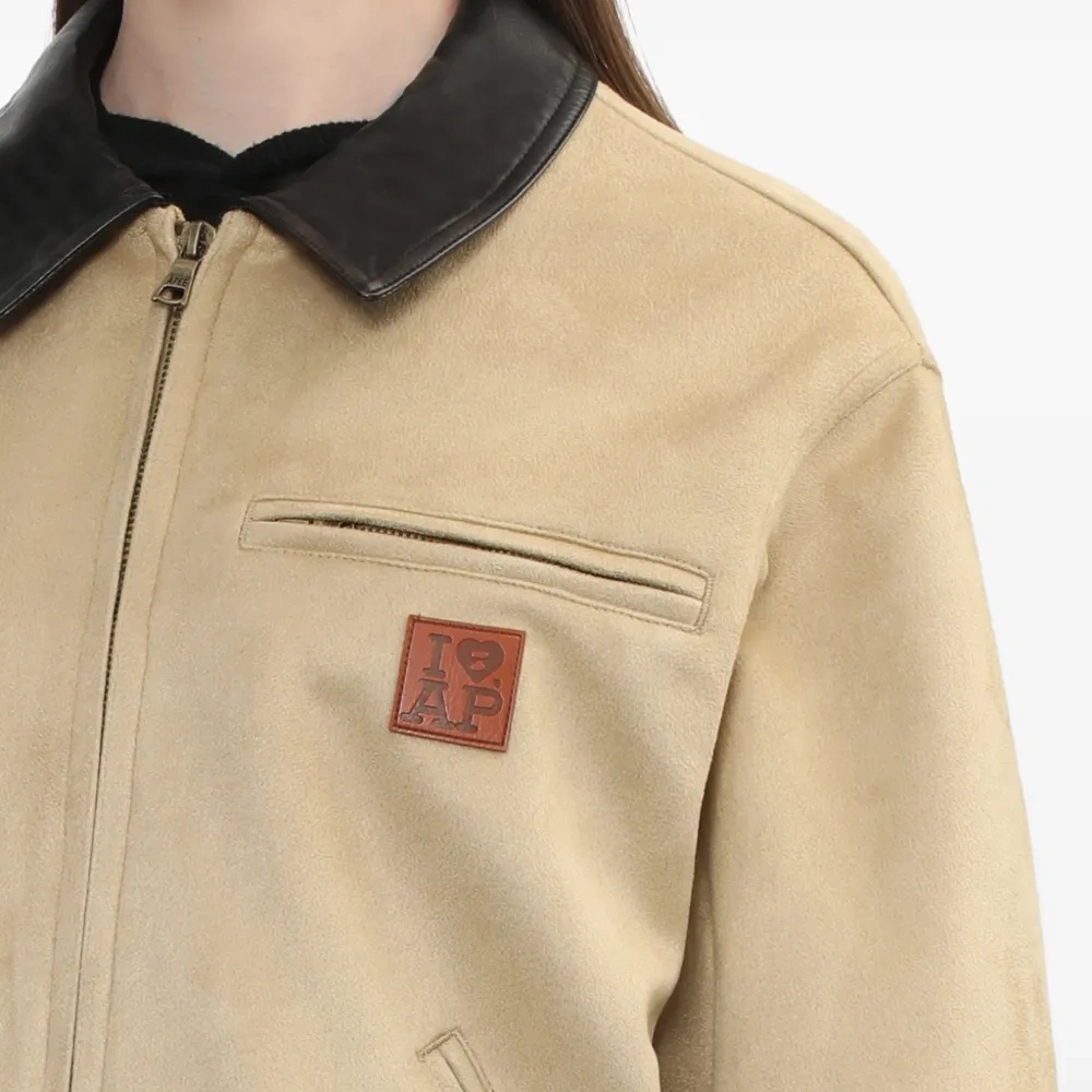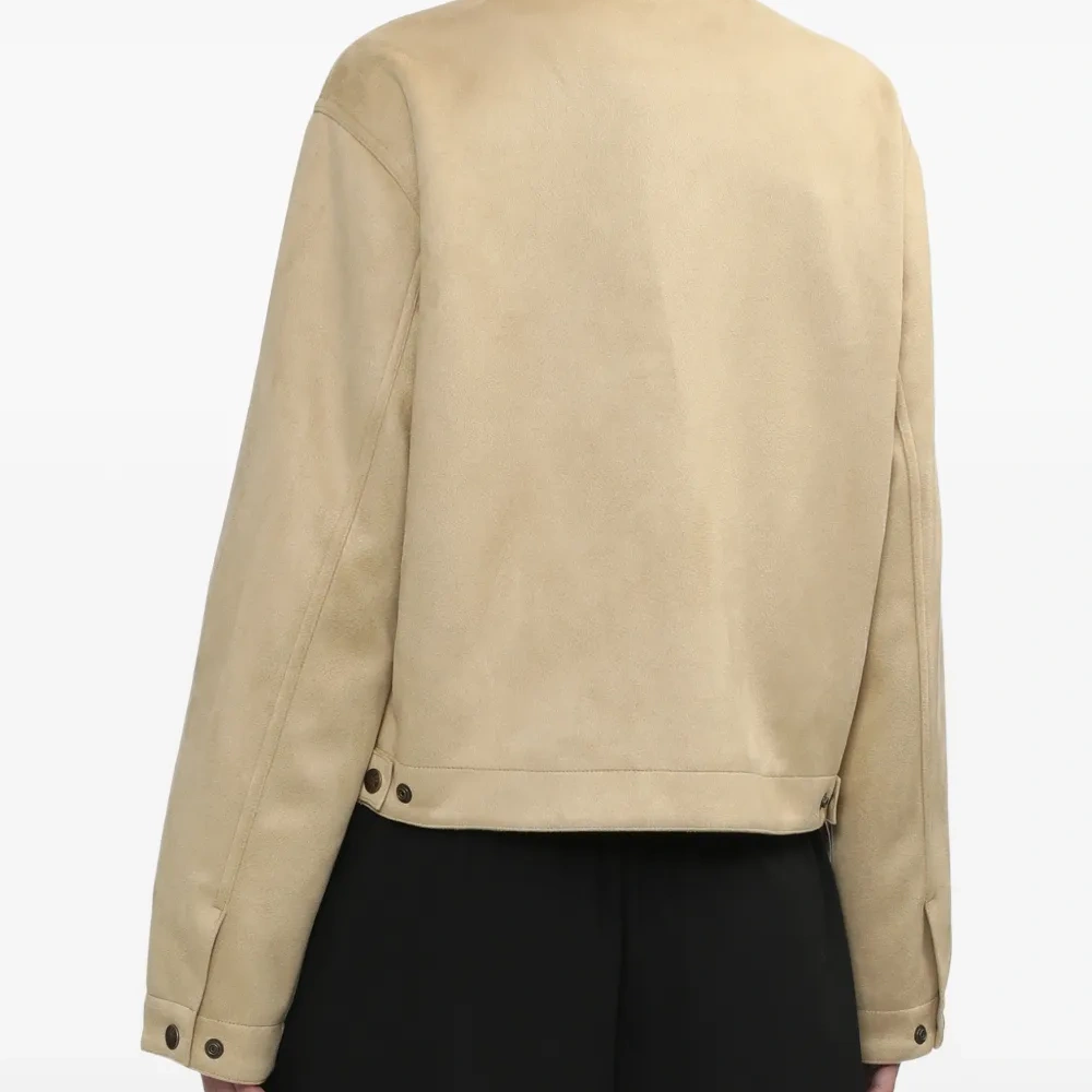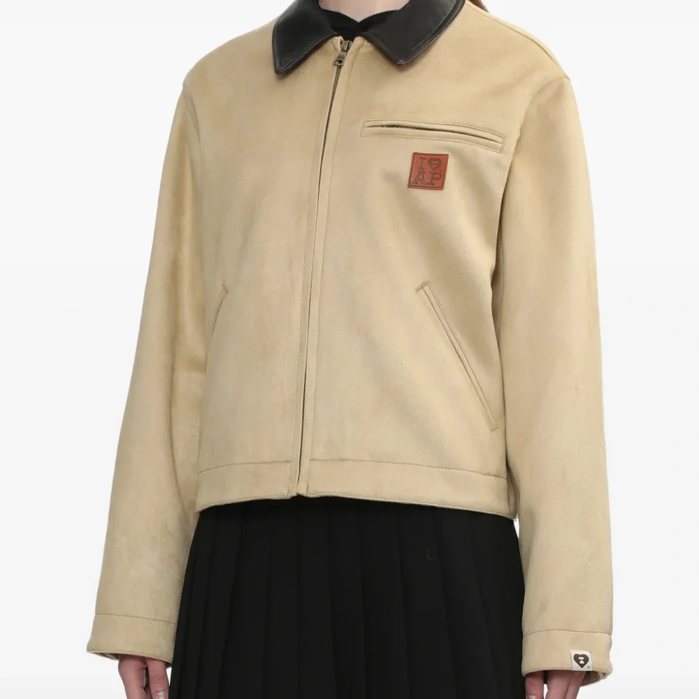 бежевый воротник, застежка на молнию, нашивка с логотипом, прорезные карманы, подол на пуговицах