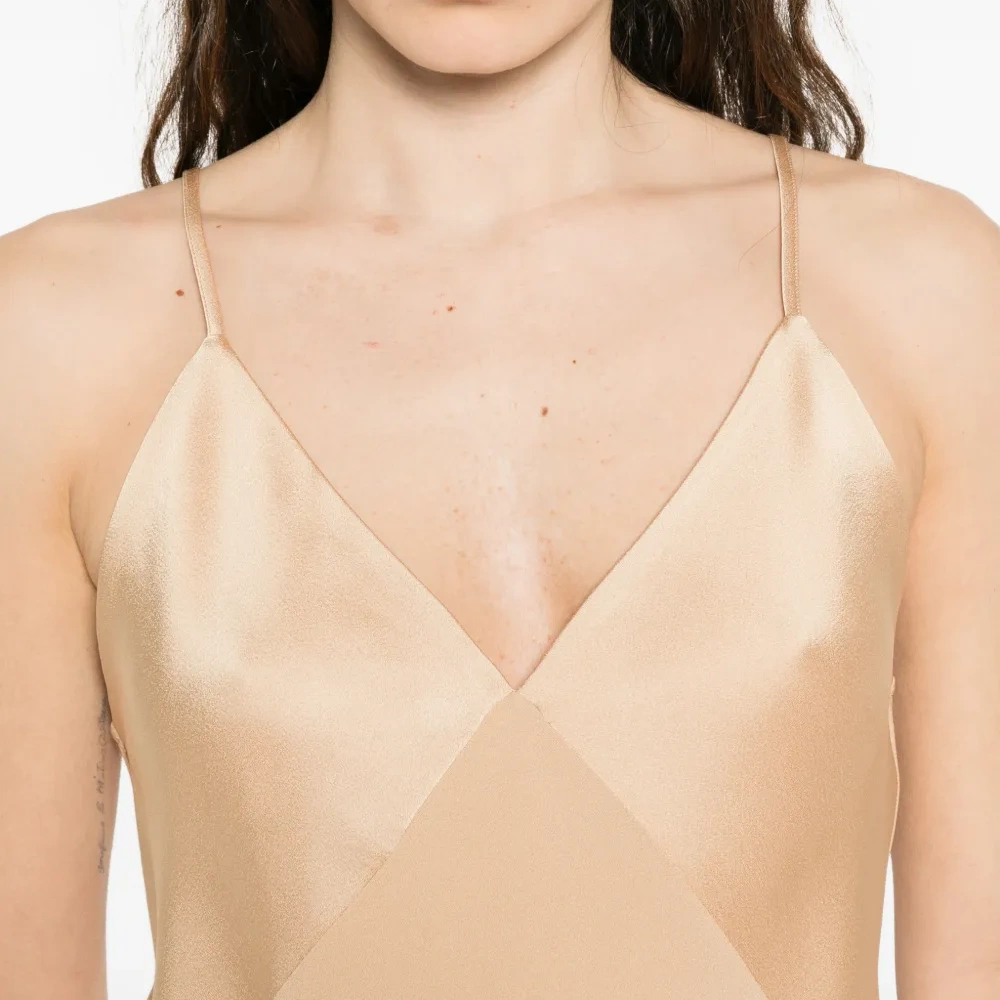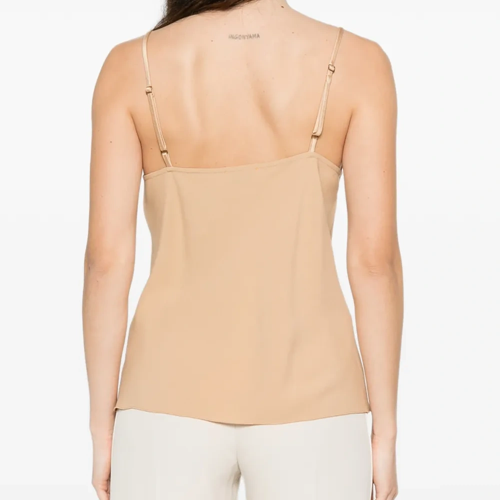 светло-бежевый топ на тонких бретелях с V-образным вырезом