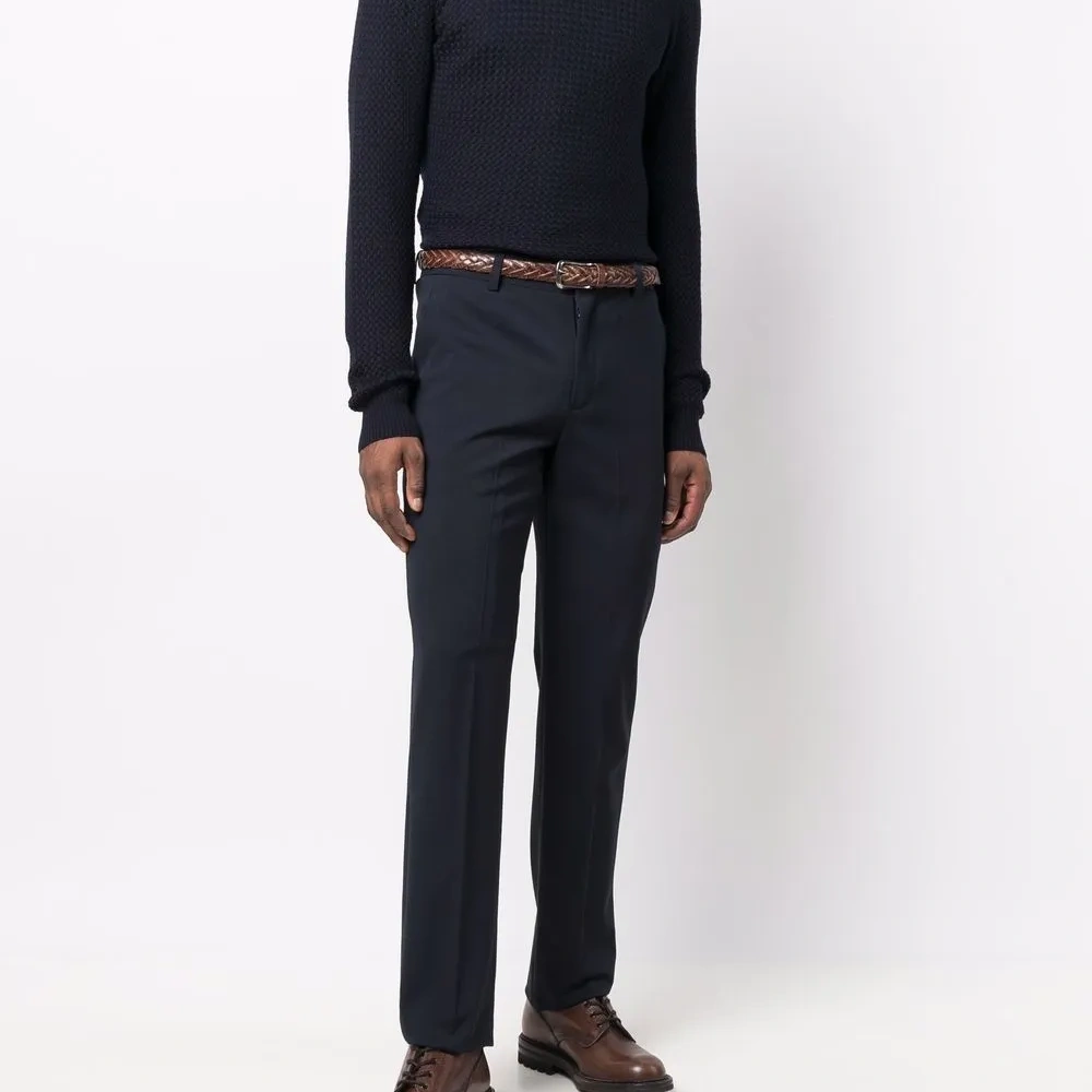Вафельная вязка, вязаные края в рубчик, круглый вырез, длинные рукава и прямой подол.