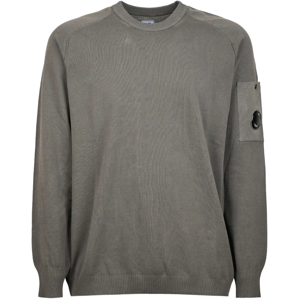 Серый свитер с накладным карманом, логотипом, круглым вырезом, длинными рукавами и ребристыми манжетами. C.P. Company рекомендует снимать все съемные аксессуары перед стиркой.
