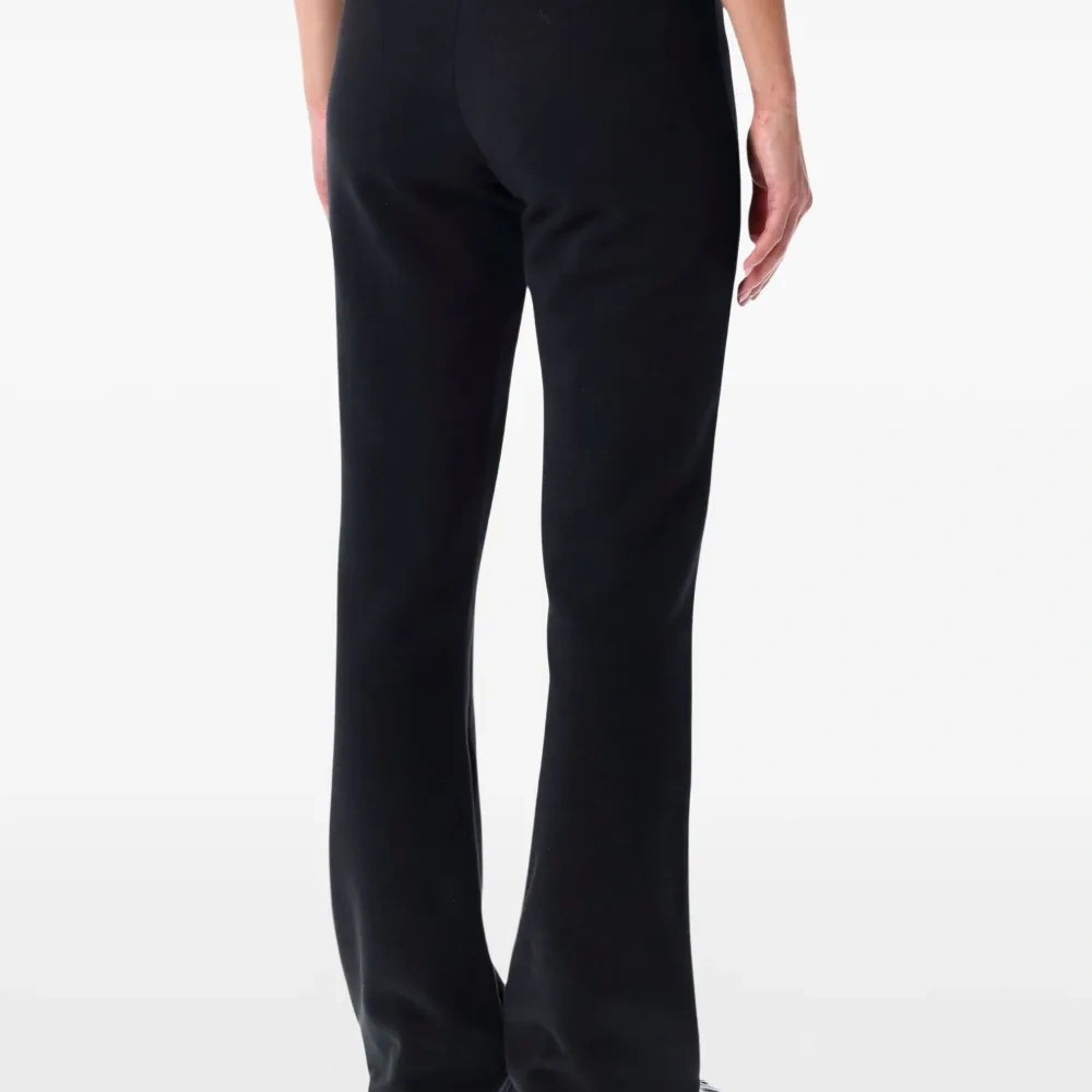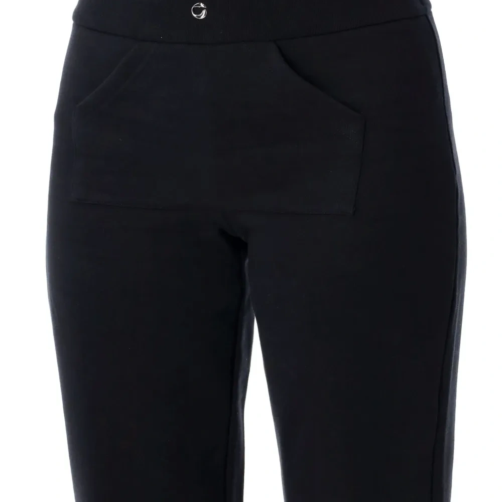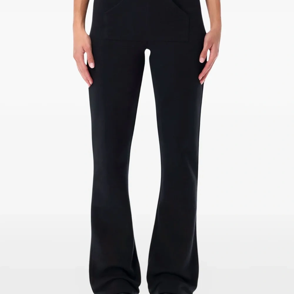 черные брюки с накладными карманами спереди и расклешенными штанинами
