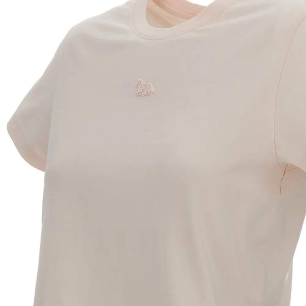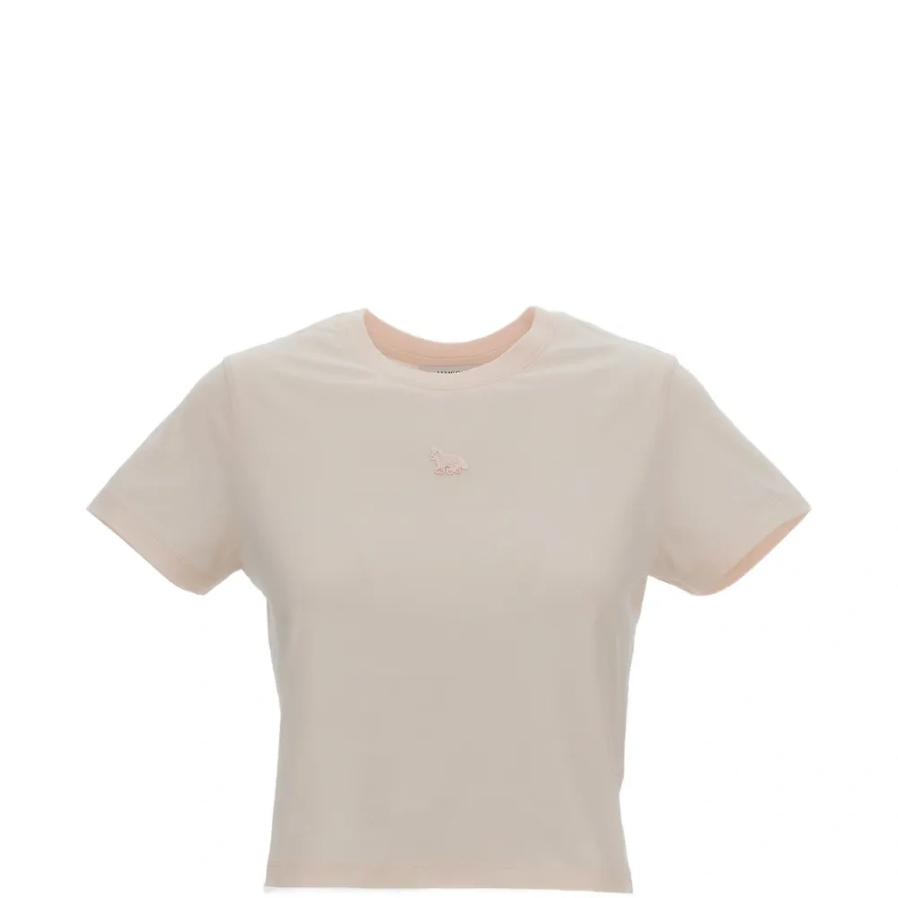 светло-розовый хлопок, вышитая нашивка, ребристая отделка, короткие рукава