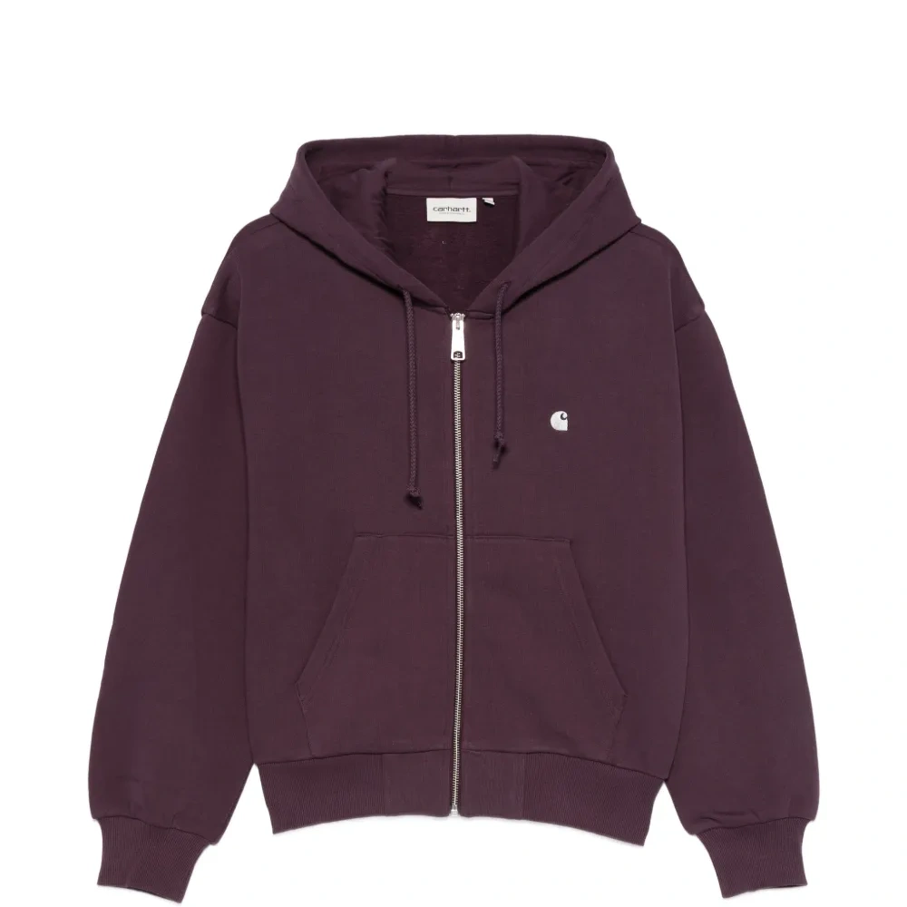 фиолетовый логотип на груди, капюшон на шнурке, передний карман-кенгуру, застежка на молнии, манжеты в рубчик