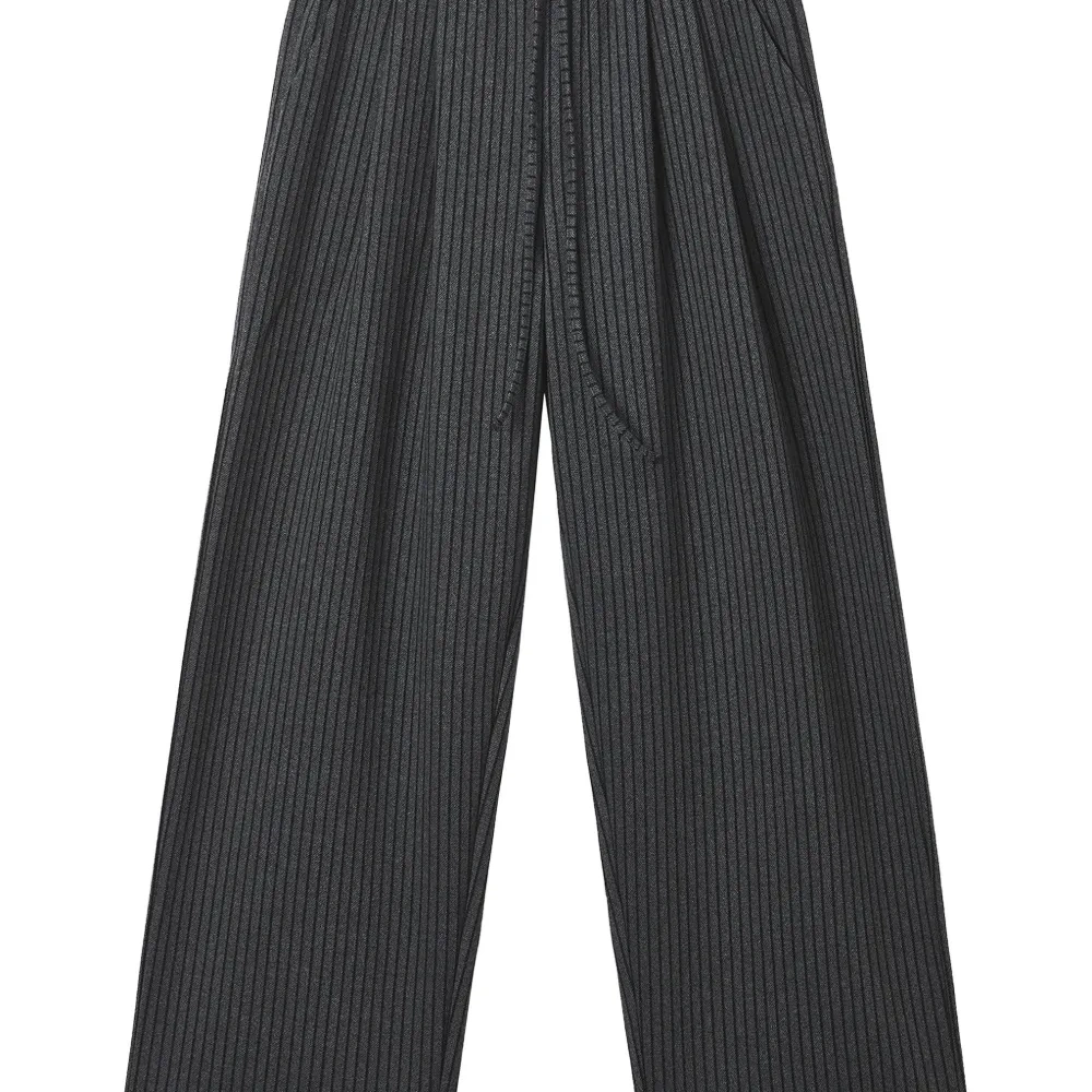 серые в полоску, застежка на шнурке, эластичный пояс, боковые карманы
