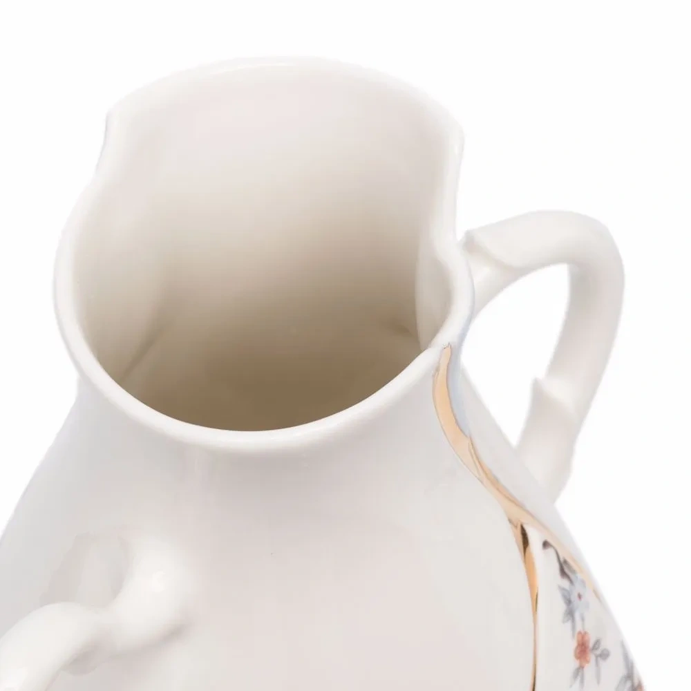 Керамика, сплошной цветочный принт и две закругленные ручки по бокам. Цвет: белый.