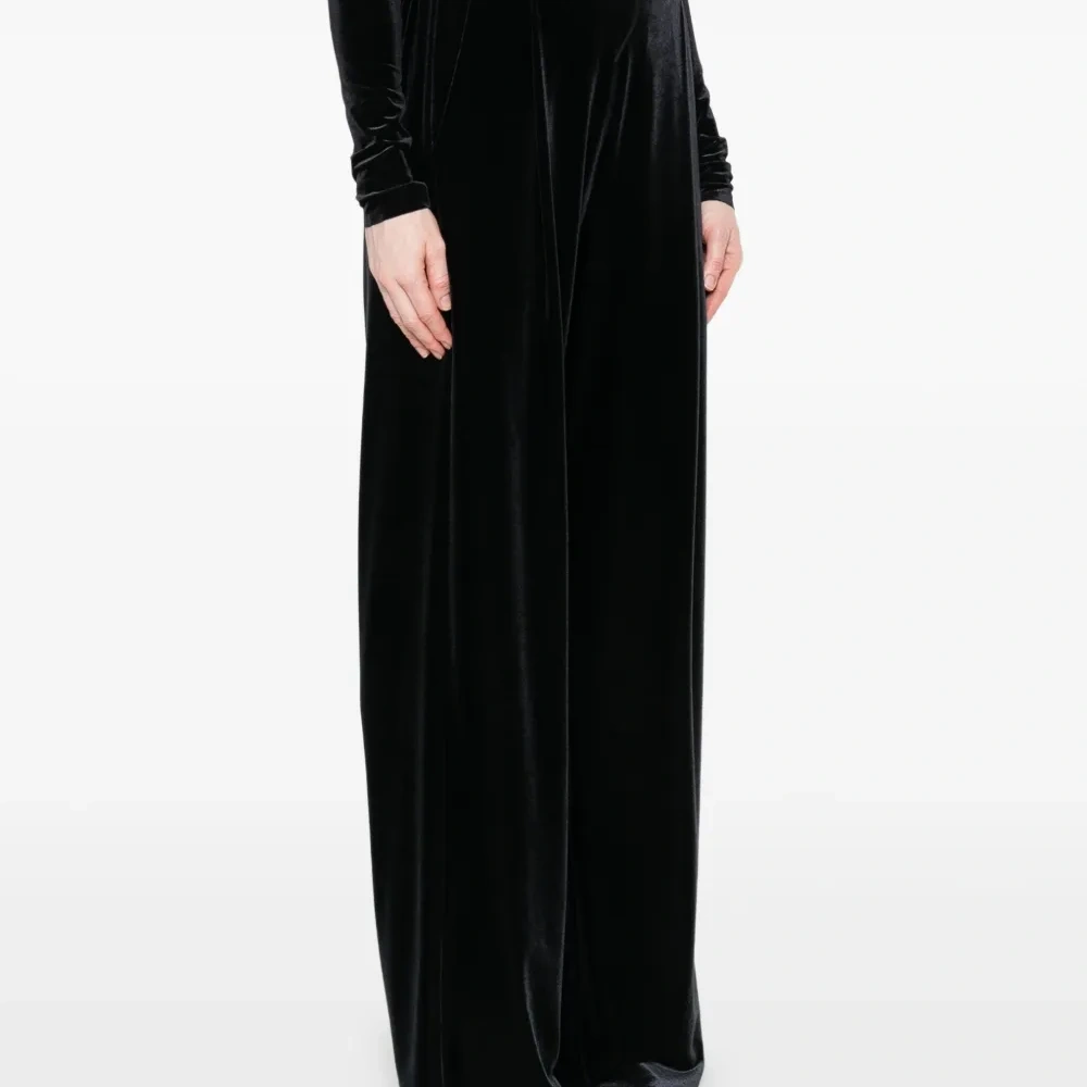 чёрные вельвет широкие штанины боковые прорезные карманы завышенная талия