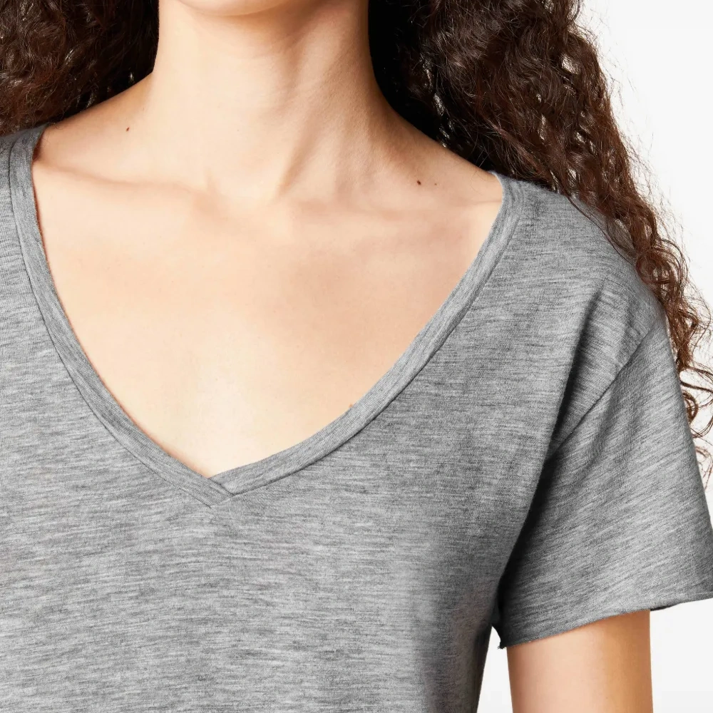 меланжево-серая футболка с короткими рукавами, V-образным вырезом, фактурой "слуб" и силуэтом "А-силуэт"